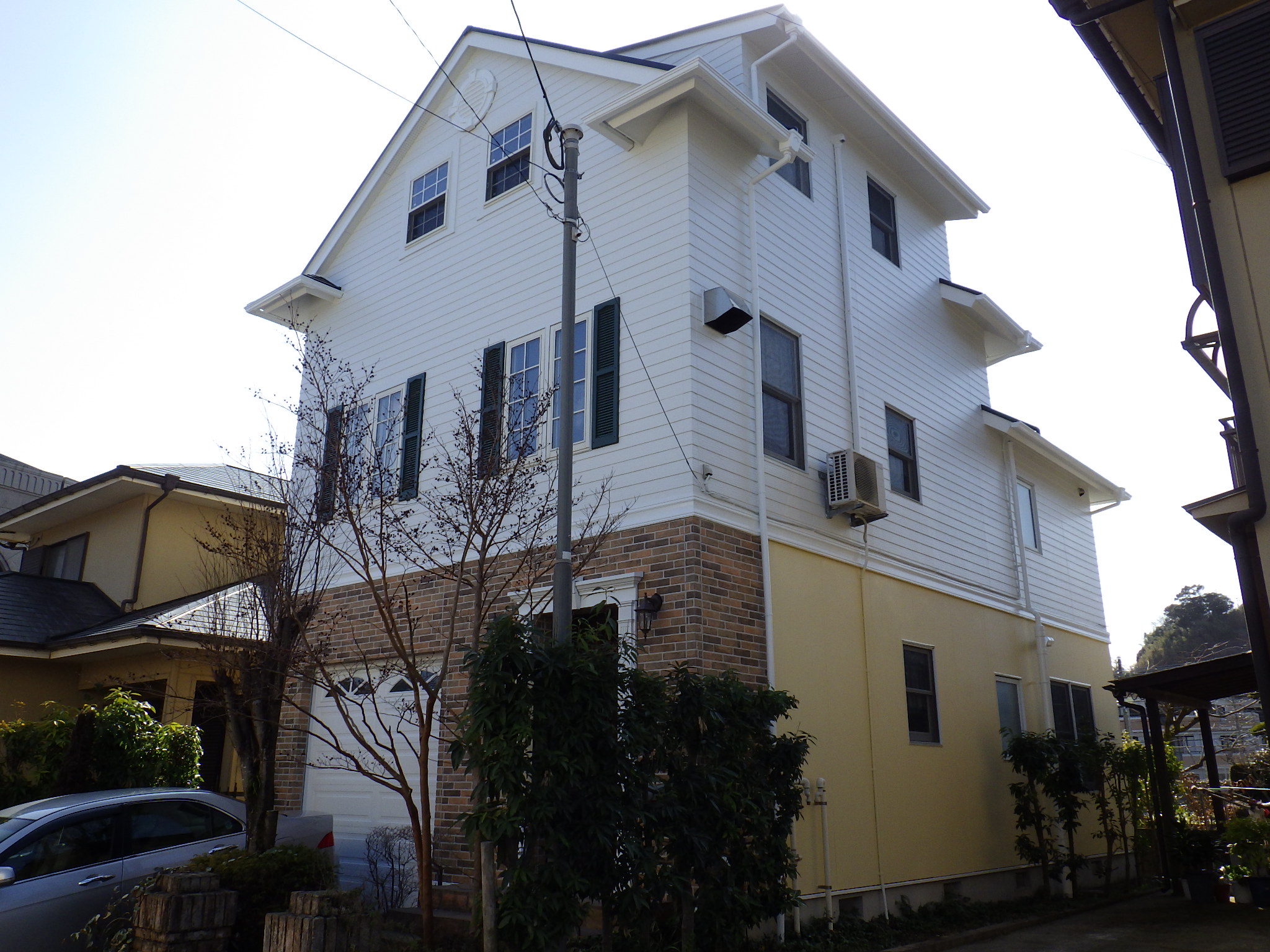 3階建て木造の住宅の屋根外壁塗装、ベランダ防水、サッシ取り換え等の工事を行いました。