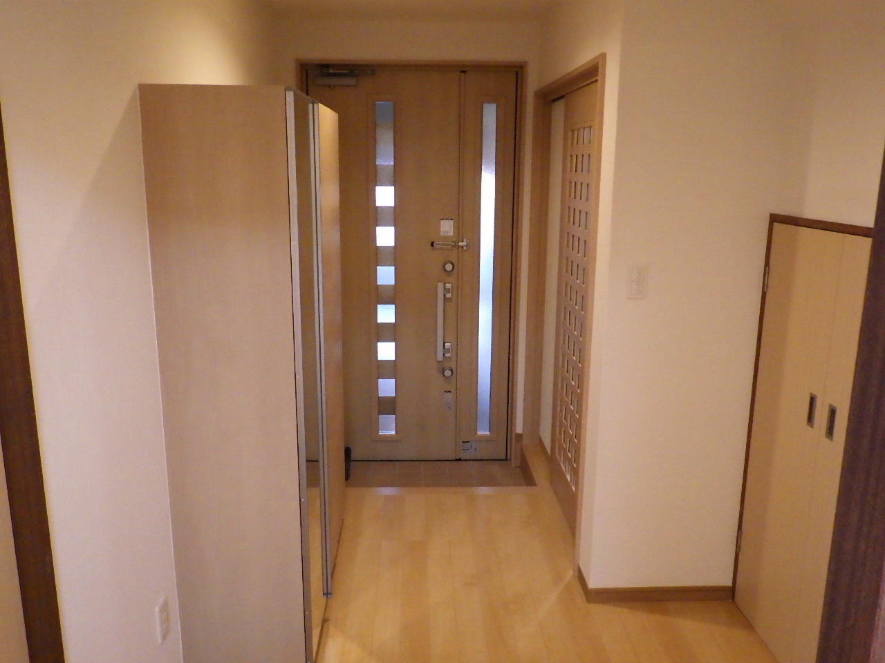 我が家に玄関ドアと靴箱が付きました。今まで店舗から45cmぐらいの段差を上がっていましたが、とても楽になりました。