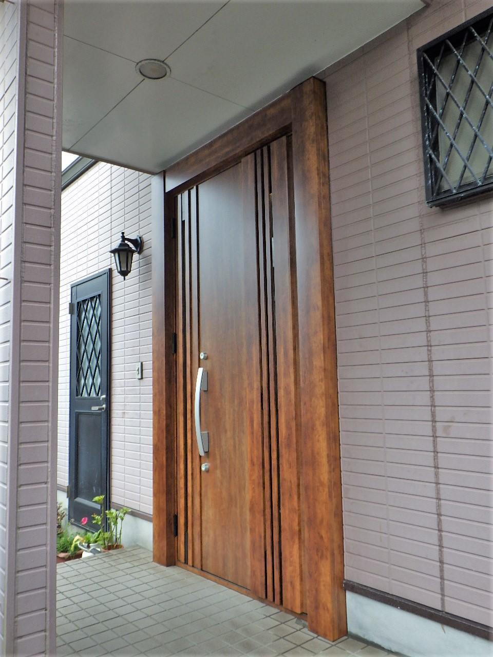 今回は玄関ドアのリフォーム工事を行いました。商品名:LIXIL リシェント玄関ドア 断熱仕様 既存のドア枠に新しい枠を取付ける「カバー工法」なので、大きな工事も必要なく1日で完了します。防犯や断熱等にも優れており、デザインの種類も豊富なので理想の玄関に仕上がります。工事金額¥624,800(材工共)