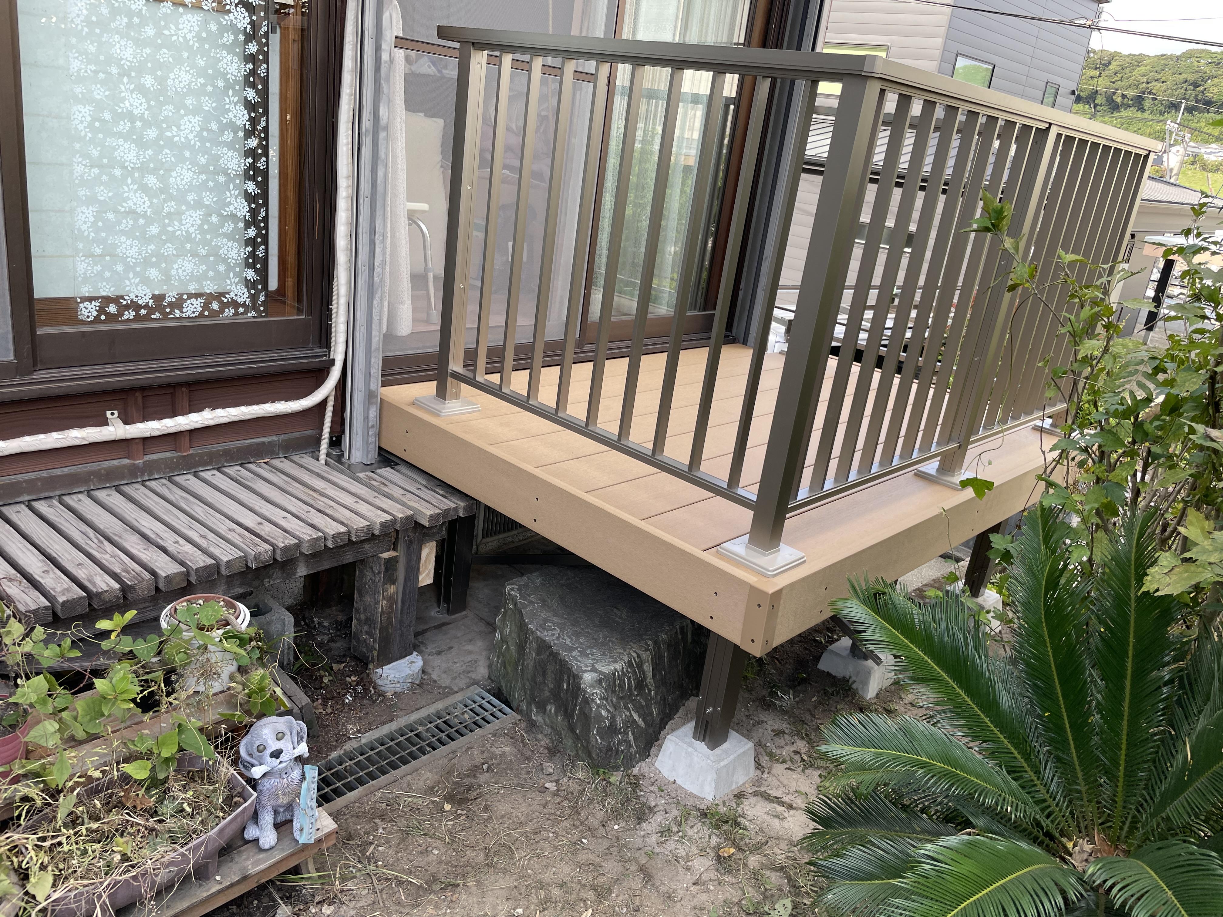 今回は、ウッドデッキの取付工事を行いました。 商品名:LIXIL 樹ら楽ステージ 自然とともに生活がしたいというニーズに応え、開放感とくつろぎに満ちたデッキのある生活をかなえます。敷地に合わせた設計・加工が出来るので、家族の暮らしに最適のスタイルが実現できます。また、日々のお手入れや補修も簡単です。 工事金額¥422,000(材工共)