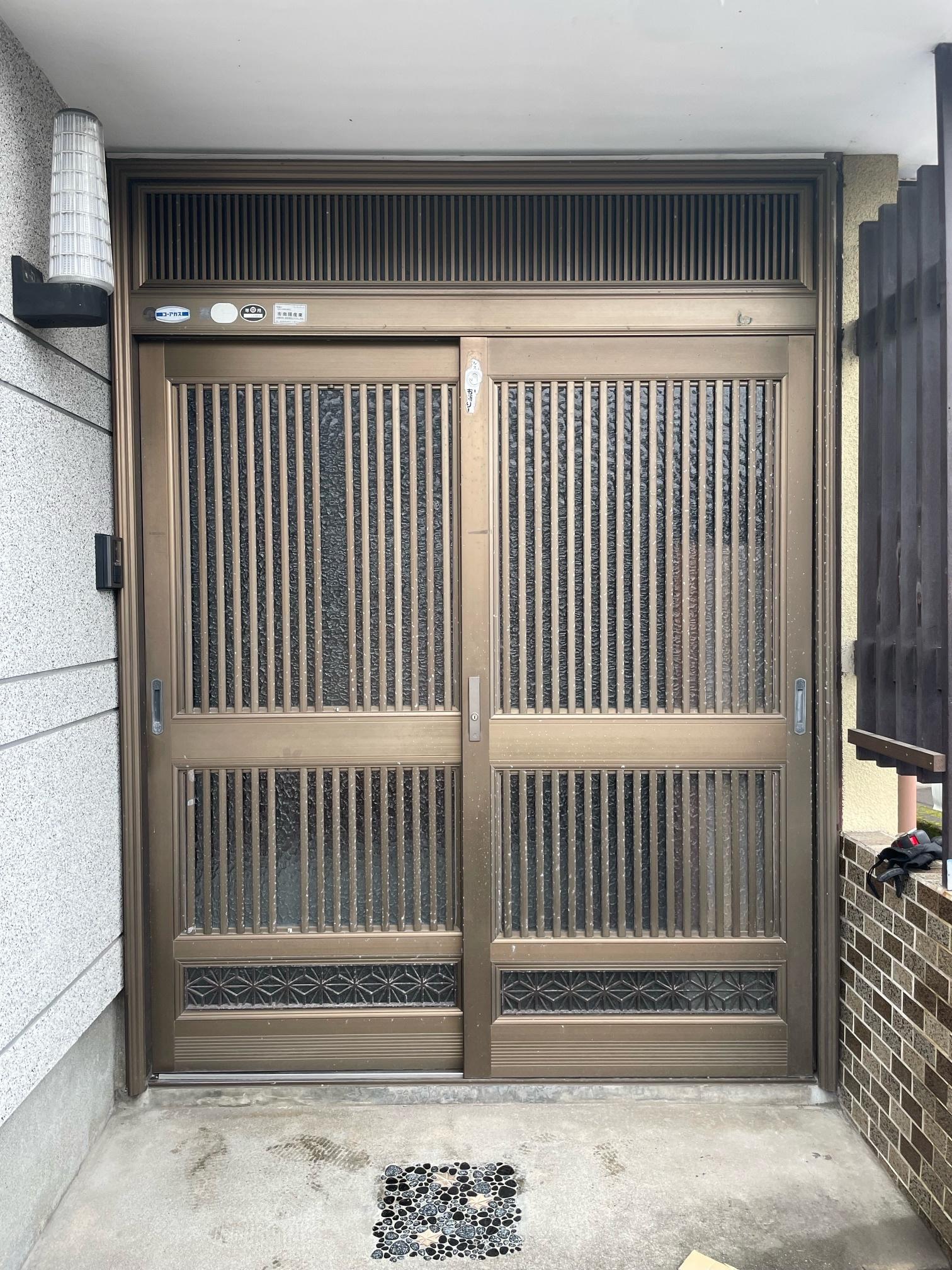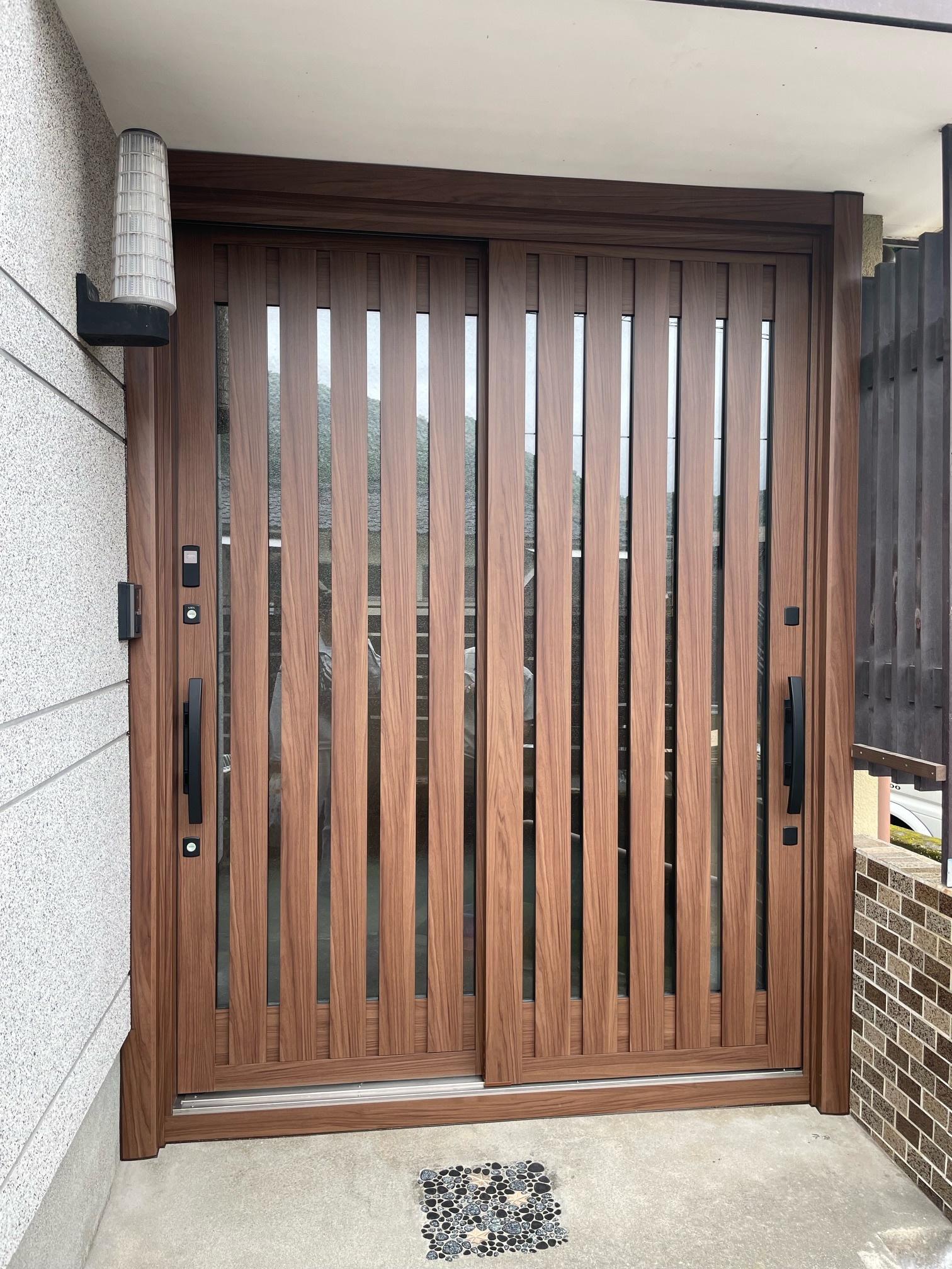 今回は、玄関引戸の取替工事を行いました。 商品名:LIXIL リシェント玄関引戸 P15型 カラー:クリエモカ リシェントは壁を壊さず取付ける「カバー工法」のため、1日で工事が完了します。カードキーやリモコンキー等の電気錠もあるため、鍵の開閉が簡易で、防犯性も高まります。工事金額¥640,000(材工共) 今現在、先進的窓リノベ補助金の方で、窓の工事と同時に玄関ドア又は玄関引戸を行うと、補助金が約¥80,000~もらえます。この機会に是非活用されてはいかがでしょうか。