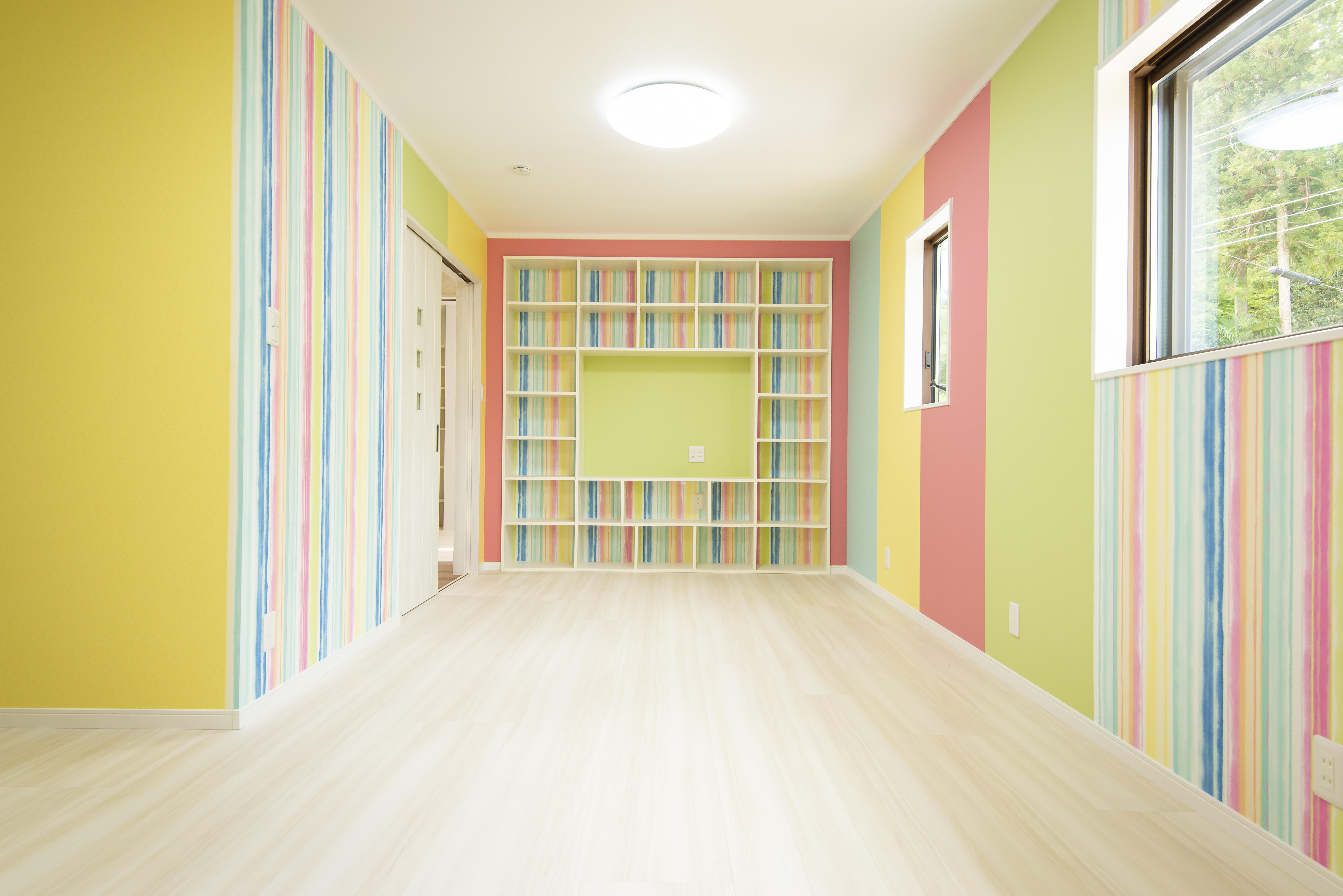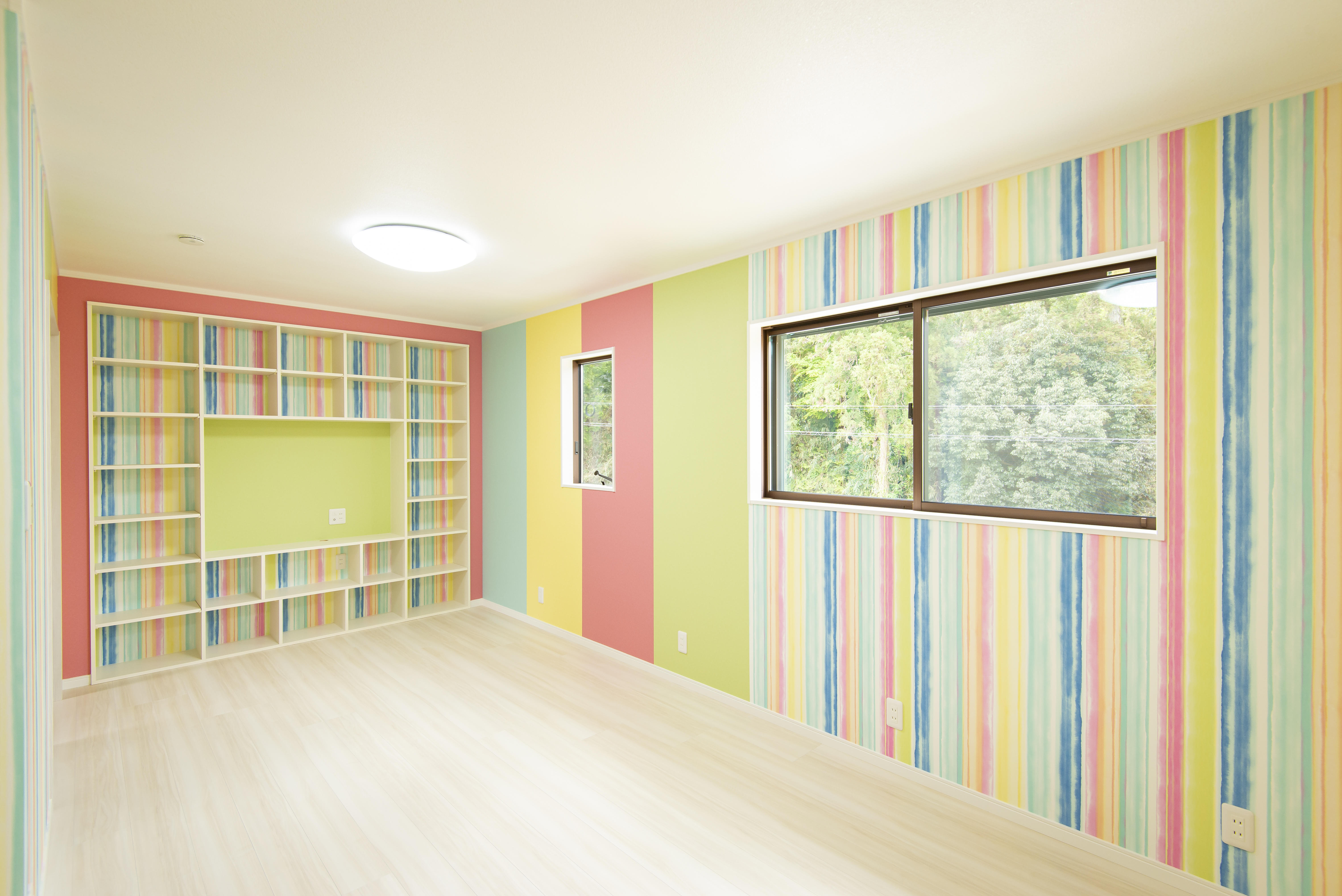 色々な色の壁紙を組み合わせて貼りました。センスの良さにプロも脱帽でした。