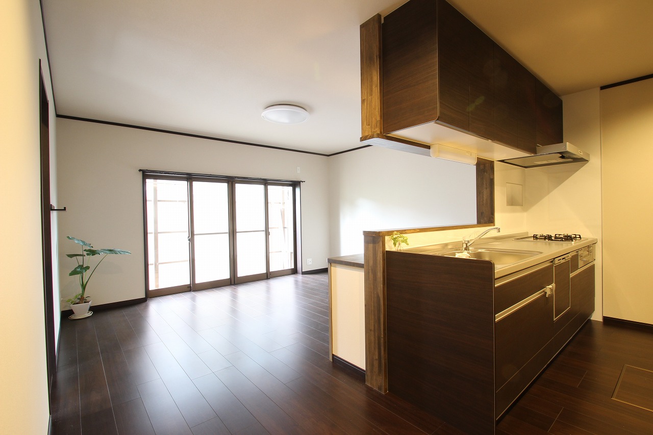 フローリングで仕上げ、家族がくつろげるリビングへと生まれ変わりました。