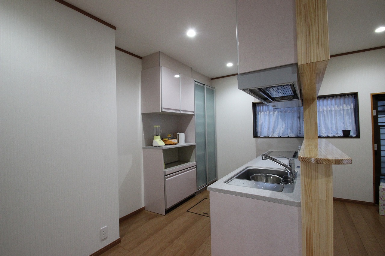 キッチンにあわせてキッチン収納も同じ扉で揃えました。