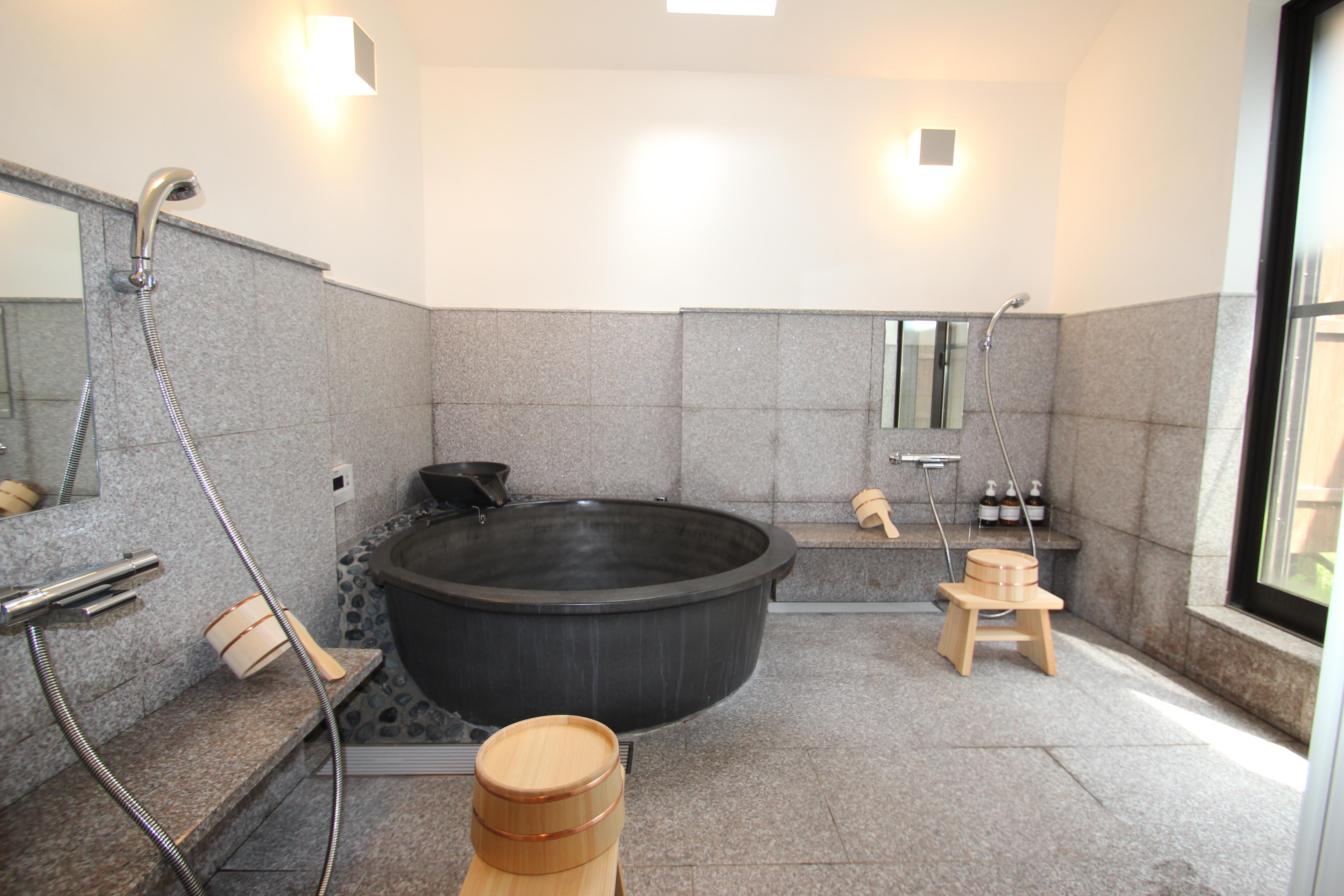 こだわりのお風呂は信楽焼の別注品です。心ゆくまでご堪能ください。