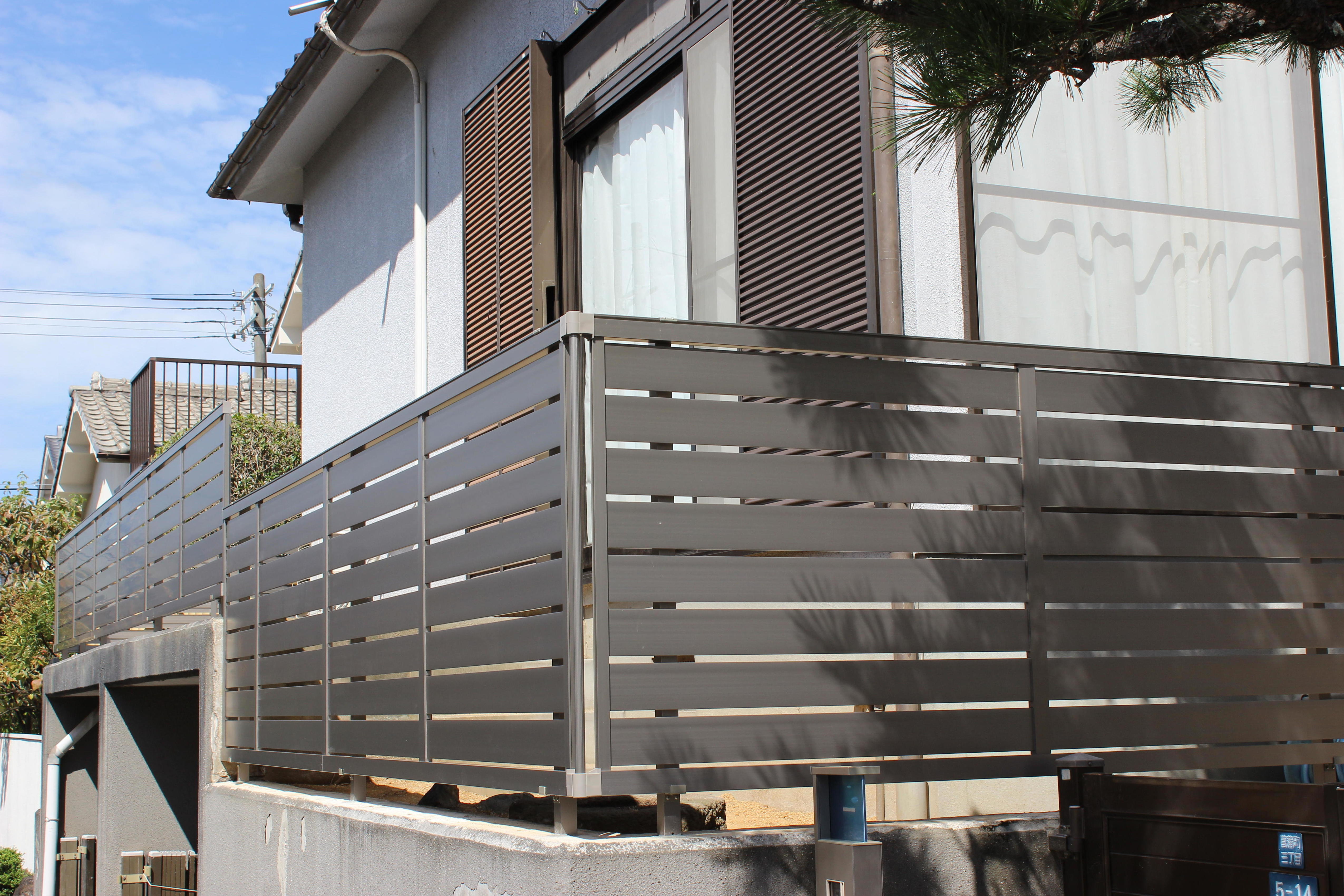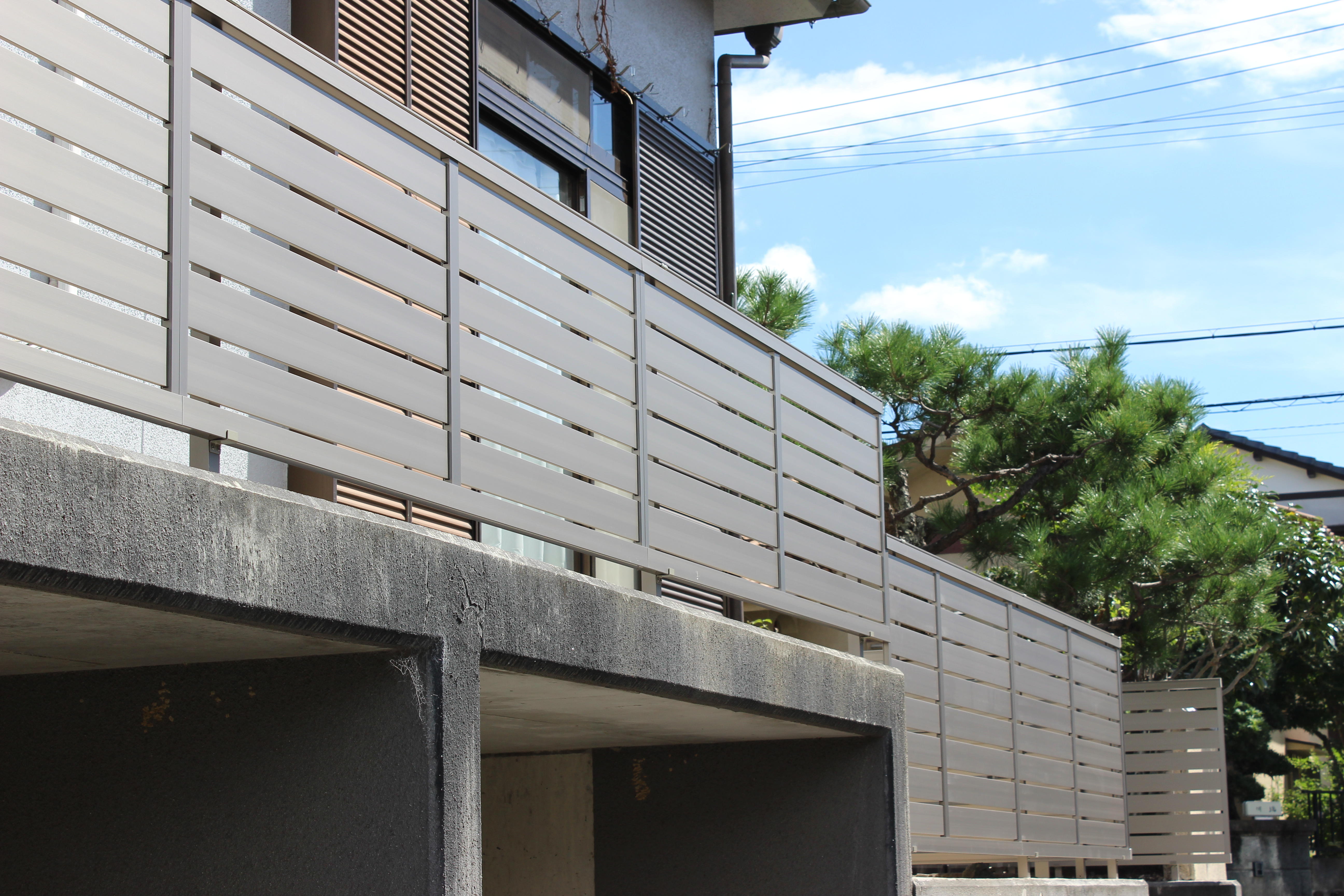 市から掘り込み駐車場の上にあるブロック塀が高さの基準で危険ブロックに該当すると通知が入ったとのことでこれを機に軽いアルミ製のフェンスに変えたいとご依頼いただきました