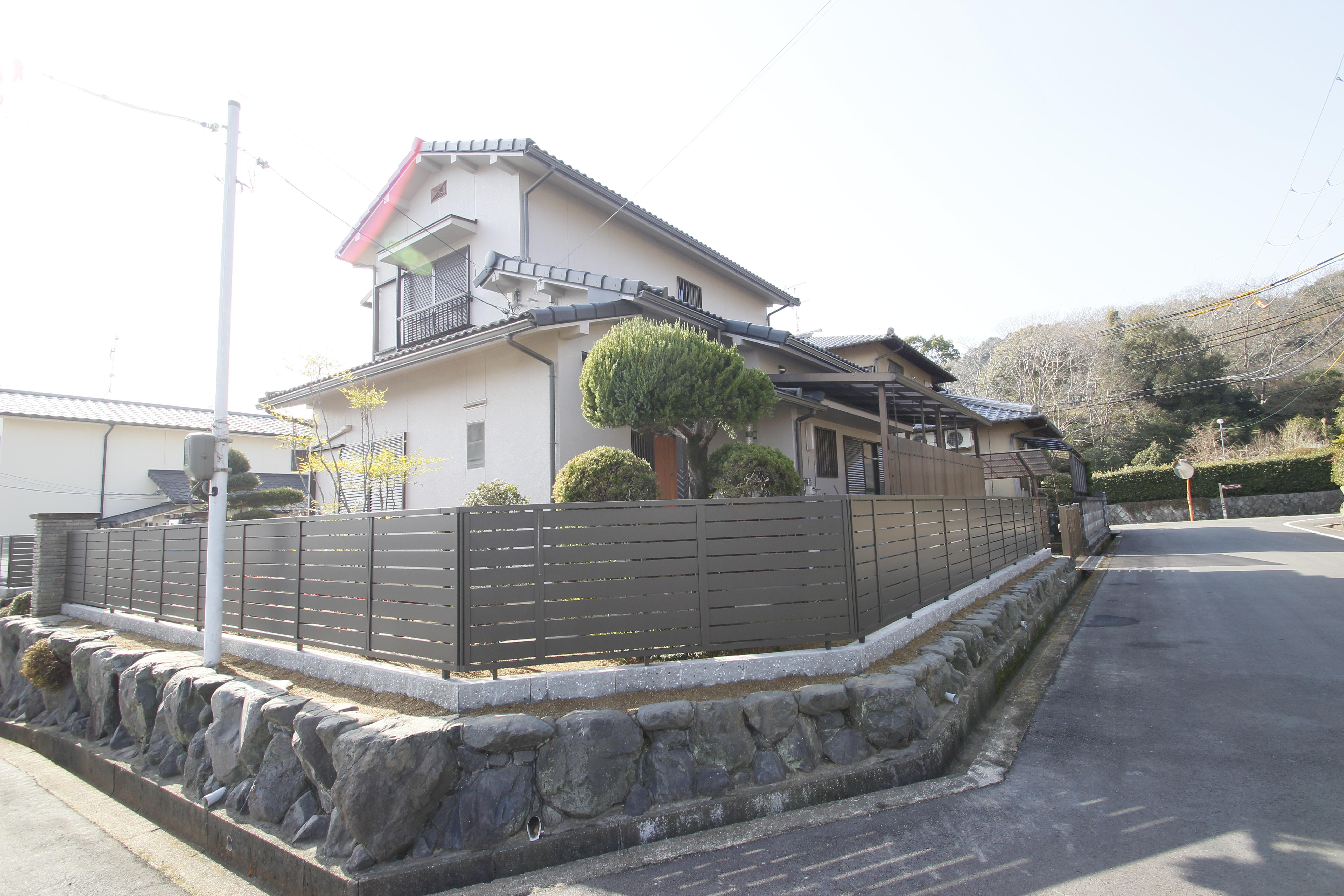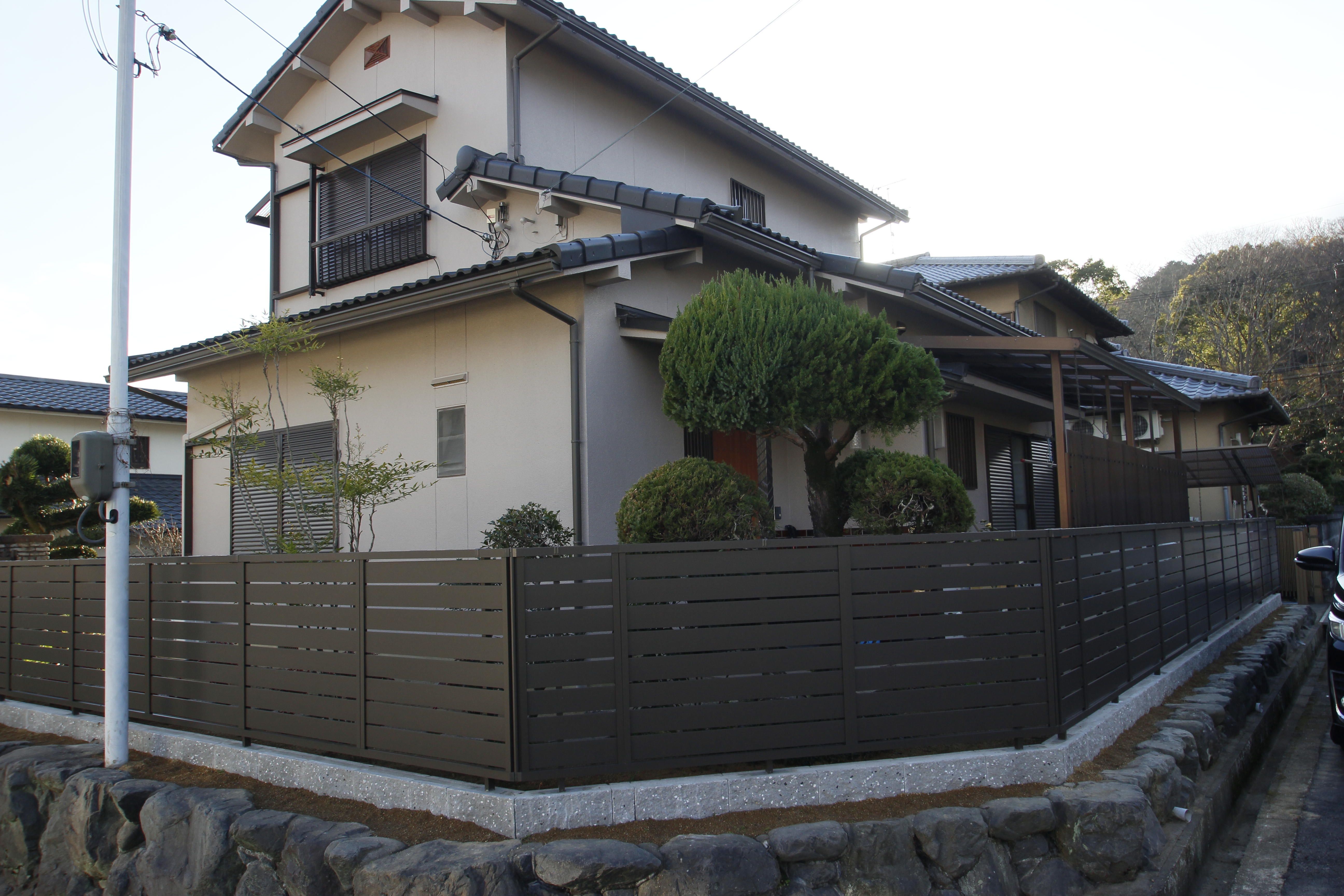 以前はレッドロビンという植物の生垣だった垣根をお手入れも大変なのでアルミ製のフェンスに変更したいとご依頼いただきました。