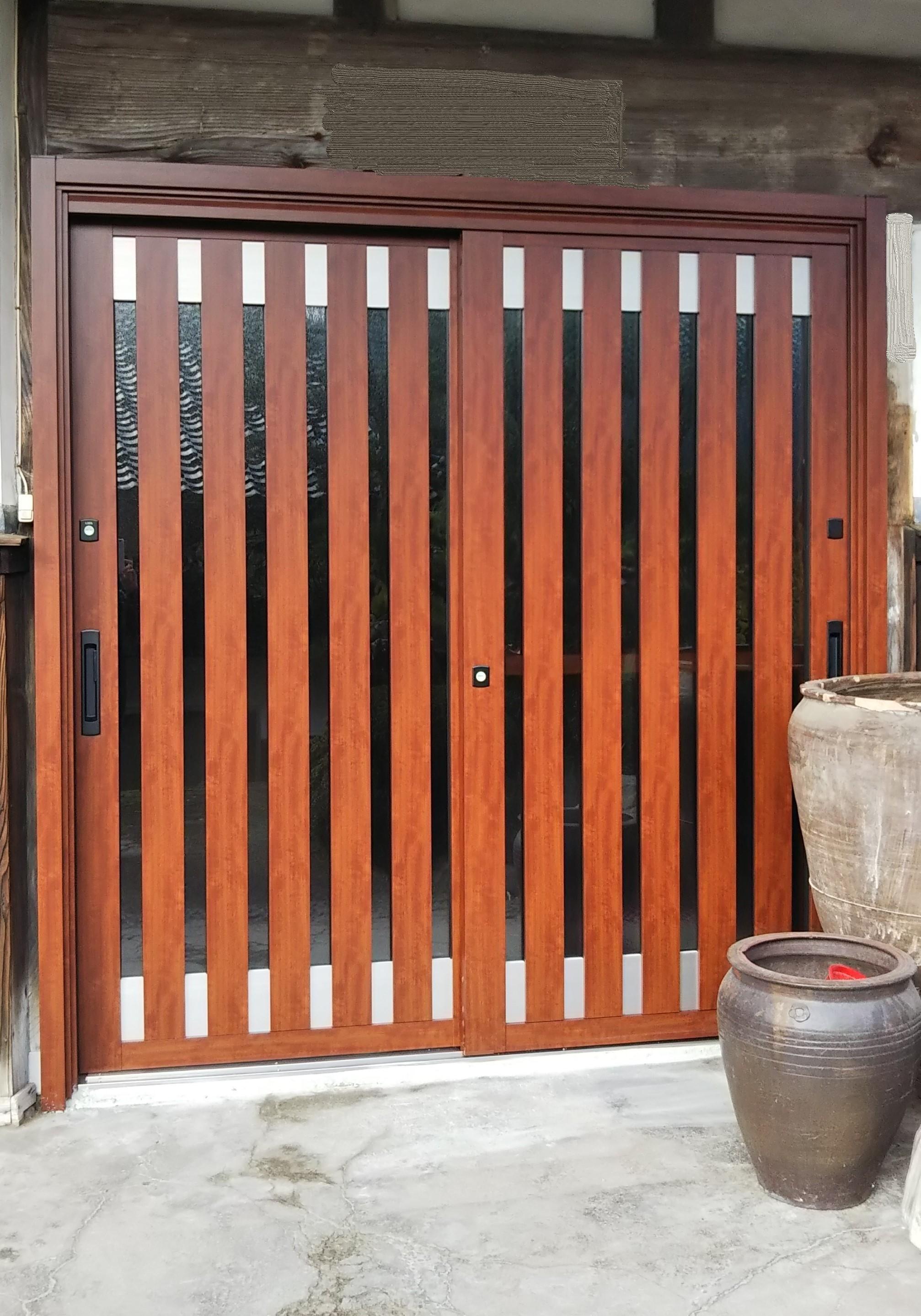 ★築120年以上。古民家の玄関リフォームです。 ★縦格子デザインで以前の面影は残しつつ、存在感ある玄関へと変わりました!