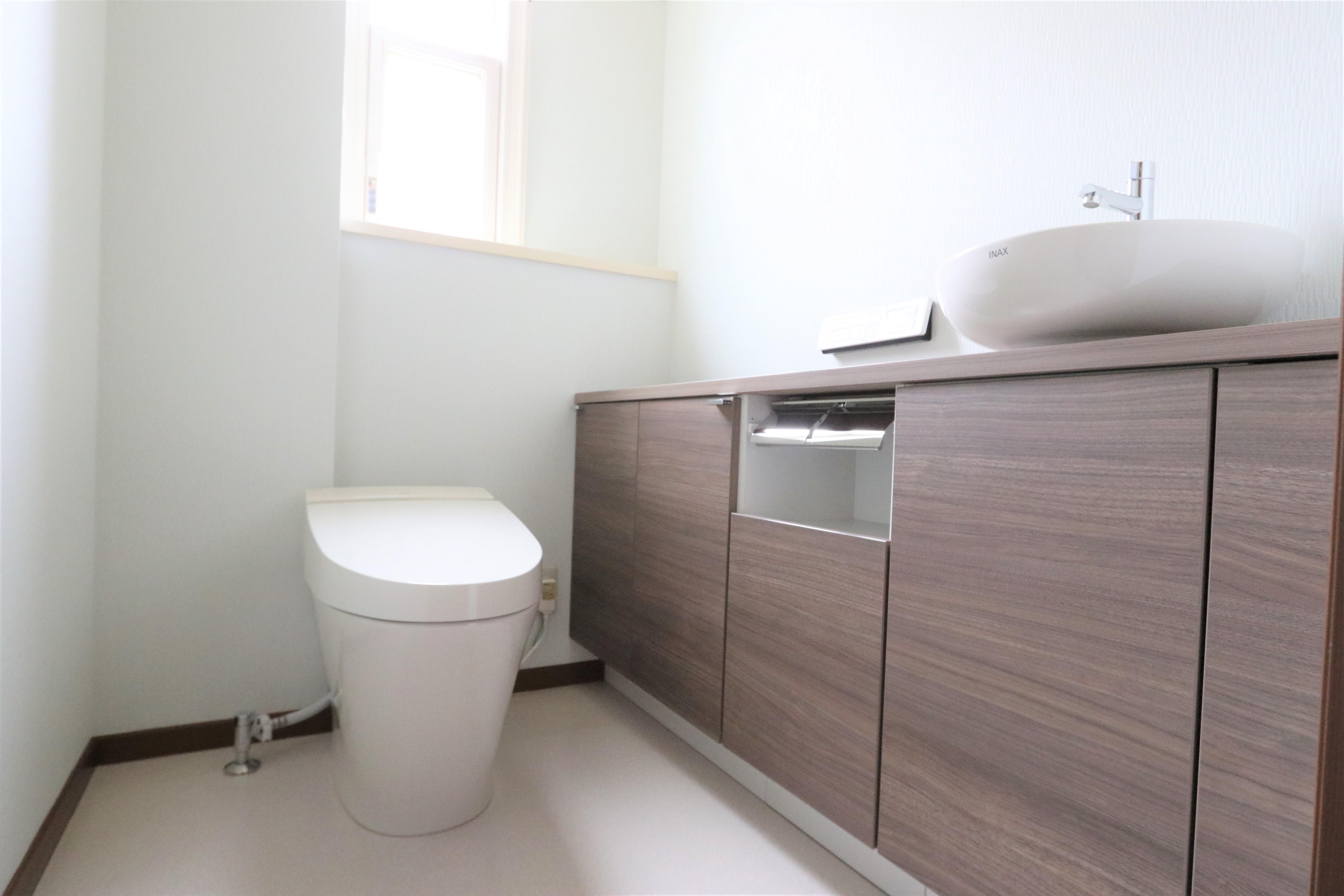 ★タンク付きのトイレから、タンクレストイレにリフォームされました。タンクが無くなるだけですっきりとした印象になり広々とした空間に! ★トイレはお家の中でも一日に使う回数の多い場所。最新のトイレはお掃除がしやすく、節水型にもなっているため、いいこと尽くめです♪