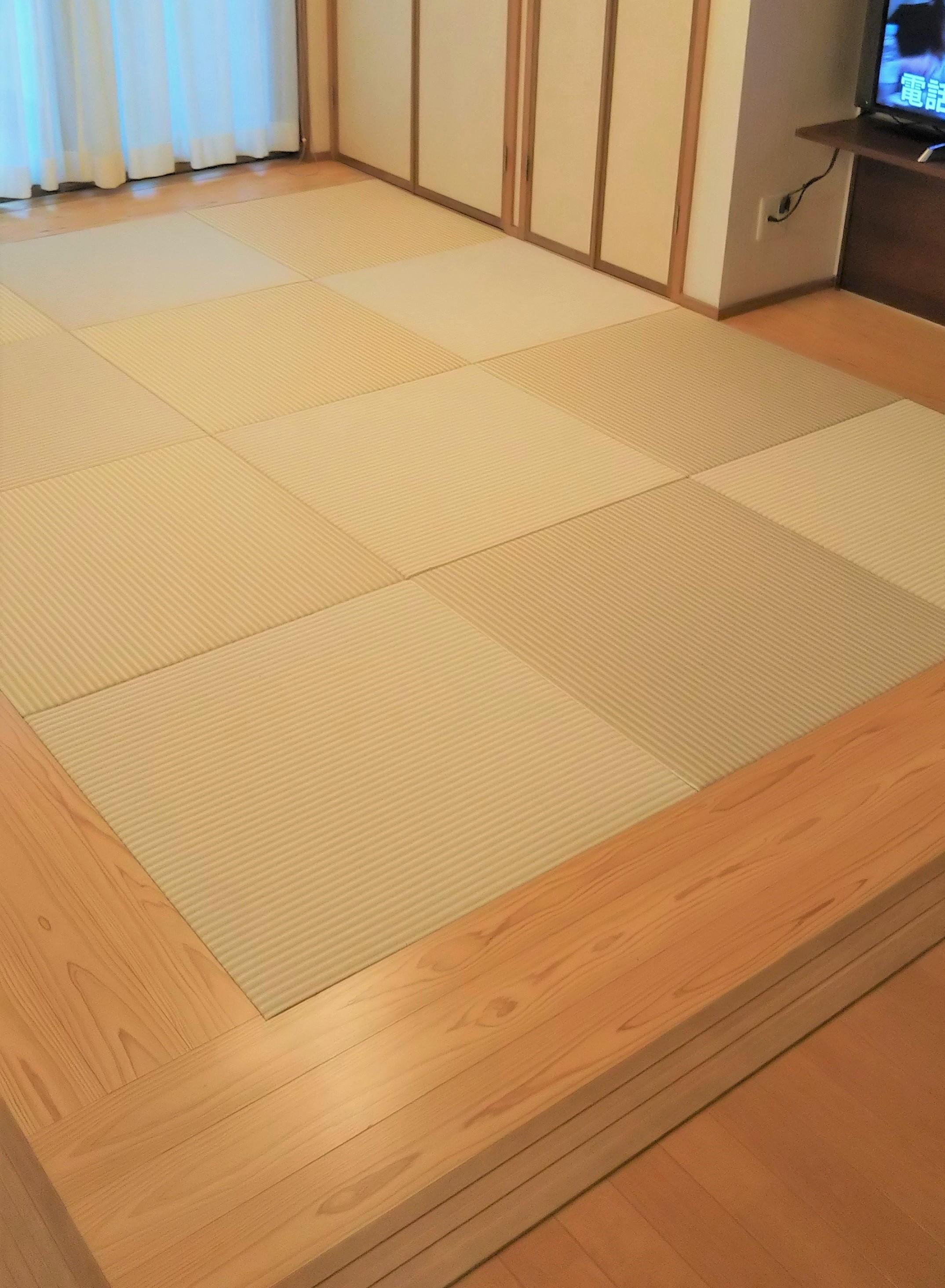 ★いぐさの畳が傷んできたので、長持ちのする和紙畳に交換されました! ★和紙畳はいぐさ畳の約3倍の耐久性があります。カビやダニの発生をおさえ、日焼けや色あせもしにくく、さらには撥水性が高いので飲み物などをこぼしても拭くだけでキレイになります♪