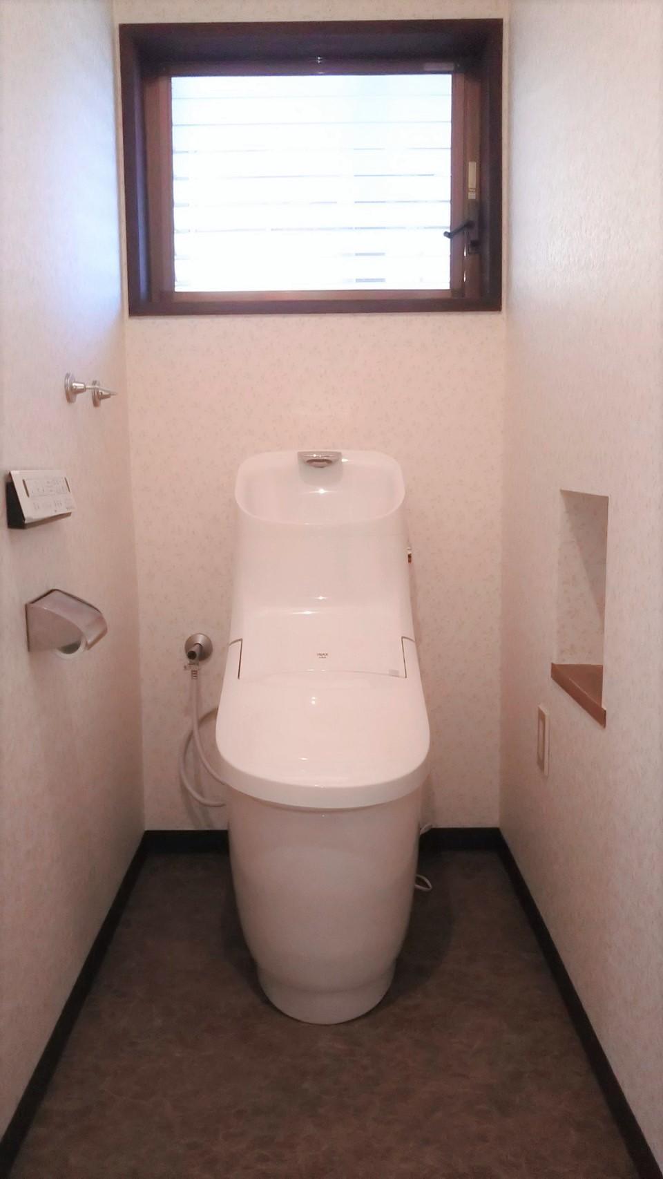 ★トイレの交換と一緒に、壁紙や床のシートを貼り替えられました! ★花柄のかわいい壁紙と、大理石柄の床シートで、トイレ空間がエレガントにリニューアル!