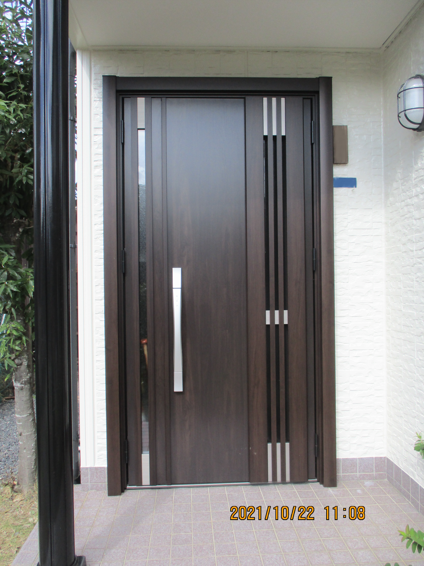 ★玄関ドアを取り替えられました! ★最新のタッチキーがついているので、荷物を持っていても車の鍵のようにピッと簡単に開けられます。 ★カバー工法の玄関リシェントを採用しているので、取替が1日であっというまに完了します。