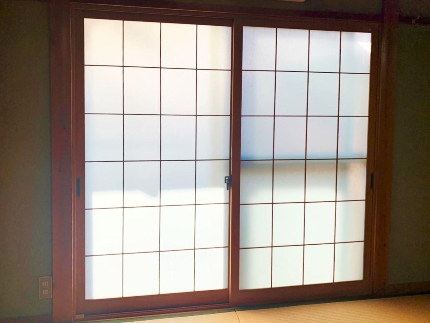 ★子供さんが帰って来られた時に窓際が寒くて寝られなかったので障子の代わりに障子風のインプラスを取り付けました。★落ち着いたデザインで色も現在の障子枠と違和感がなくとても気に入っていただきました。★同時に動きが悪かった網戸、サッシにも油をさしていただきスムーズに開閉できるようになりとてもお喜びでした。