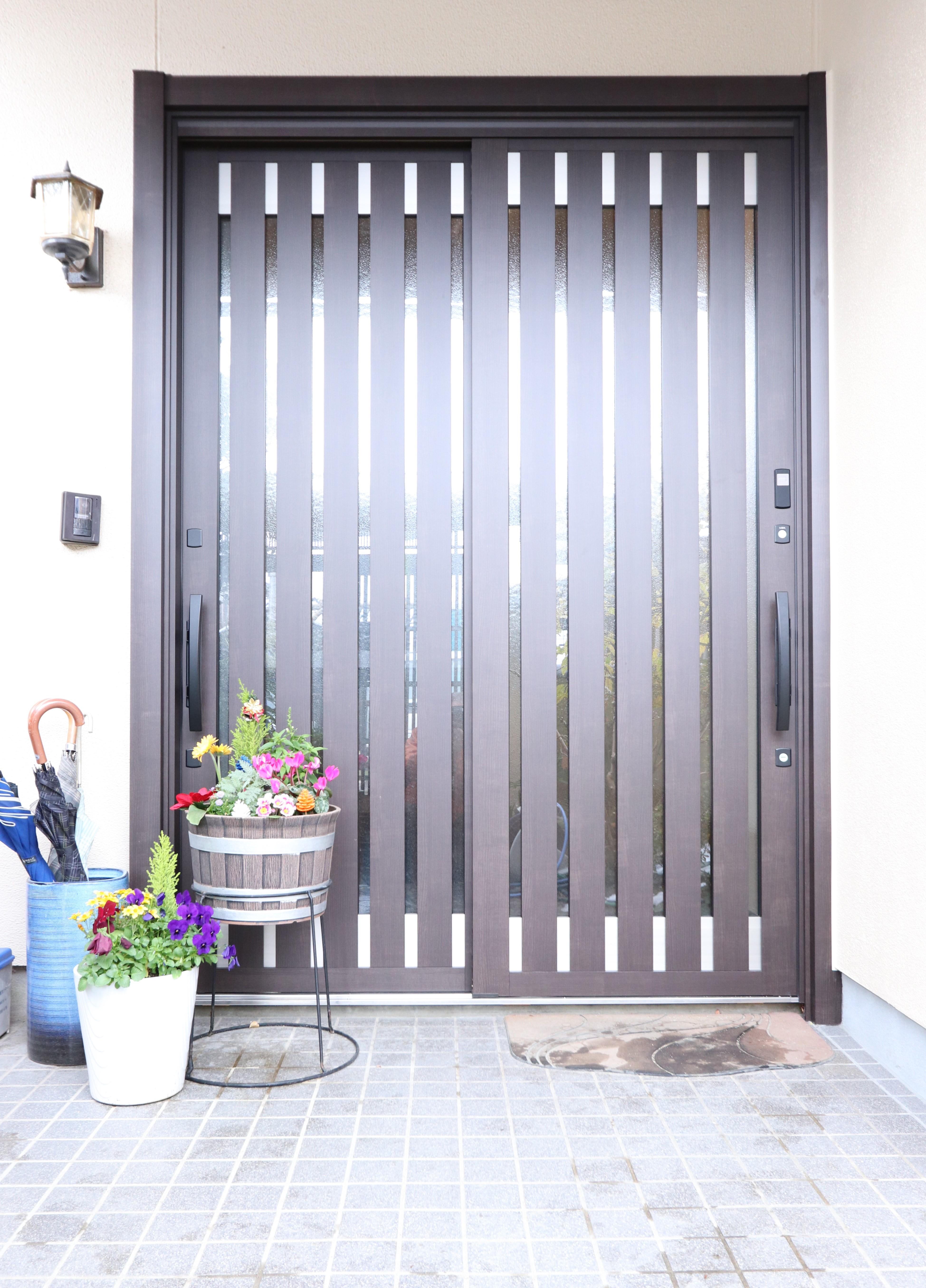★玄関ドアを交換されました。★1日の工事でパッと取替えができる玄関リシェント。★タッチキーが付いているので、荷物を手に提げていても簡単に開け閉めができます。