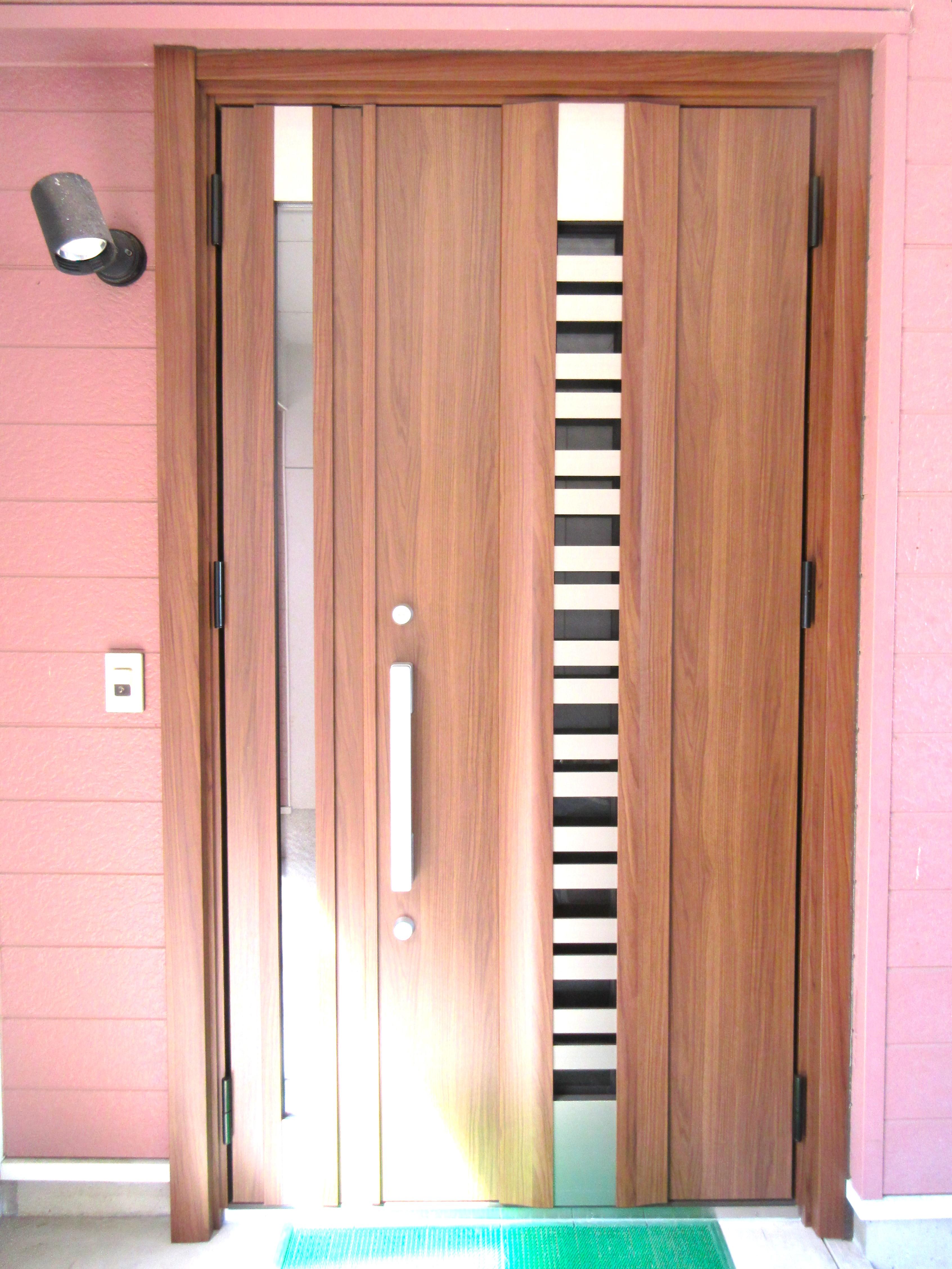 ★玄関ドアを一日でパパっと取り替え。★ランマを無くし、上まですっきりしたデザインに。★硝子部分も減り断熱効果が高まりました。