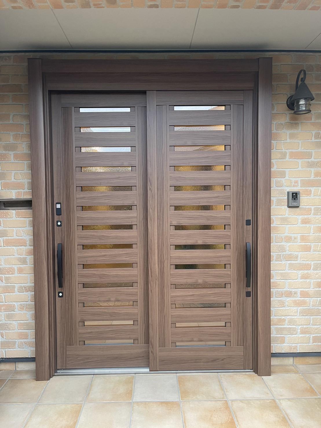 玄関ドアをリシェントへ交換されました。 開き戸から引き戸へ変わり、デザインだけでなく機能性も充実です!