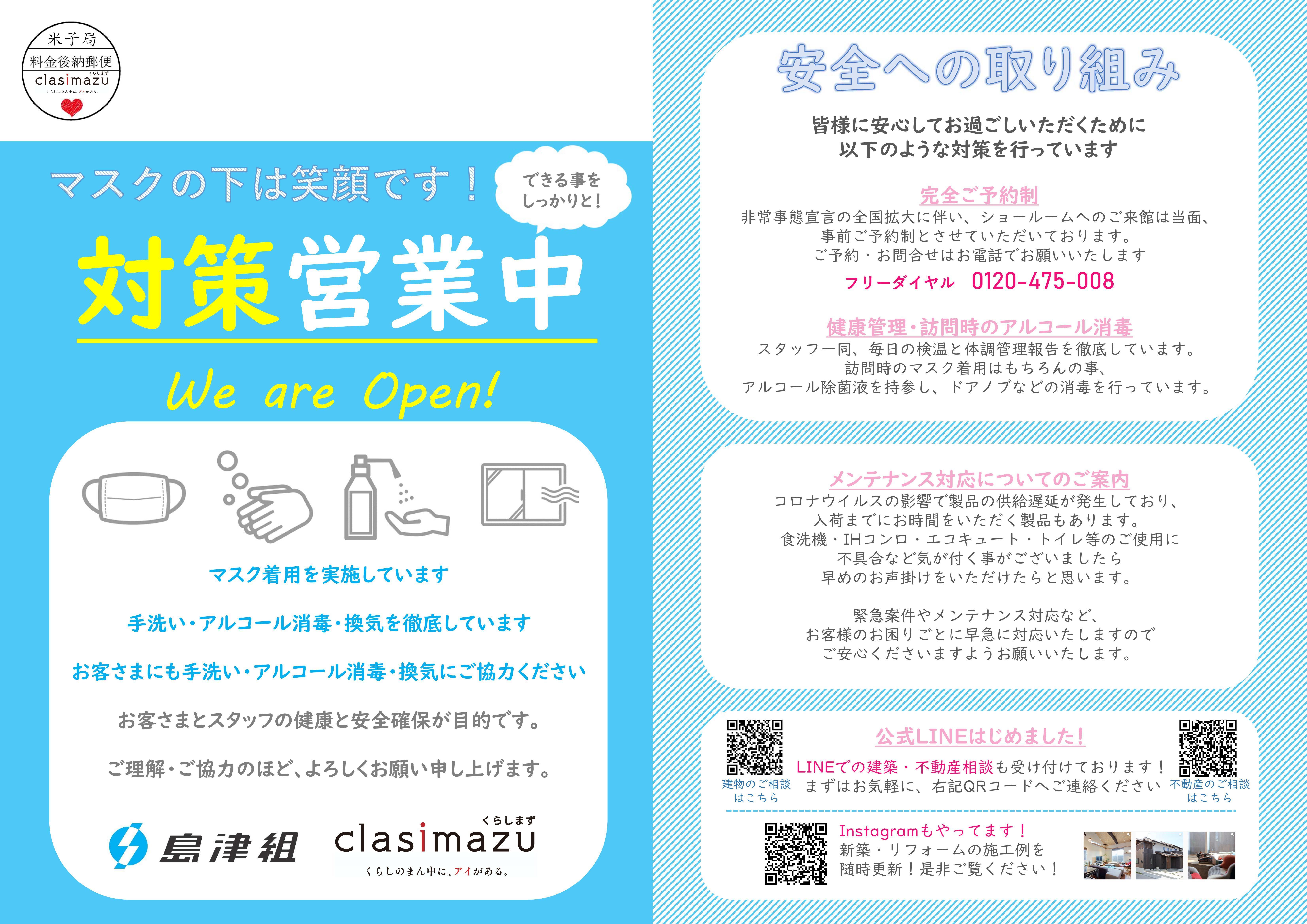 弊社は、お客様と社員の健康と安全確保対策をしつつ