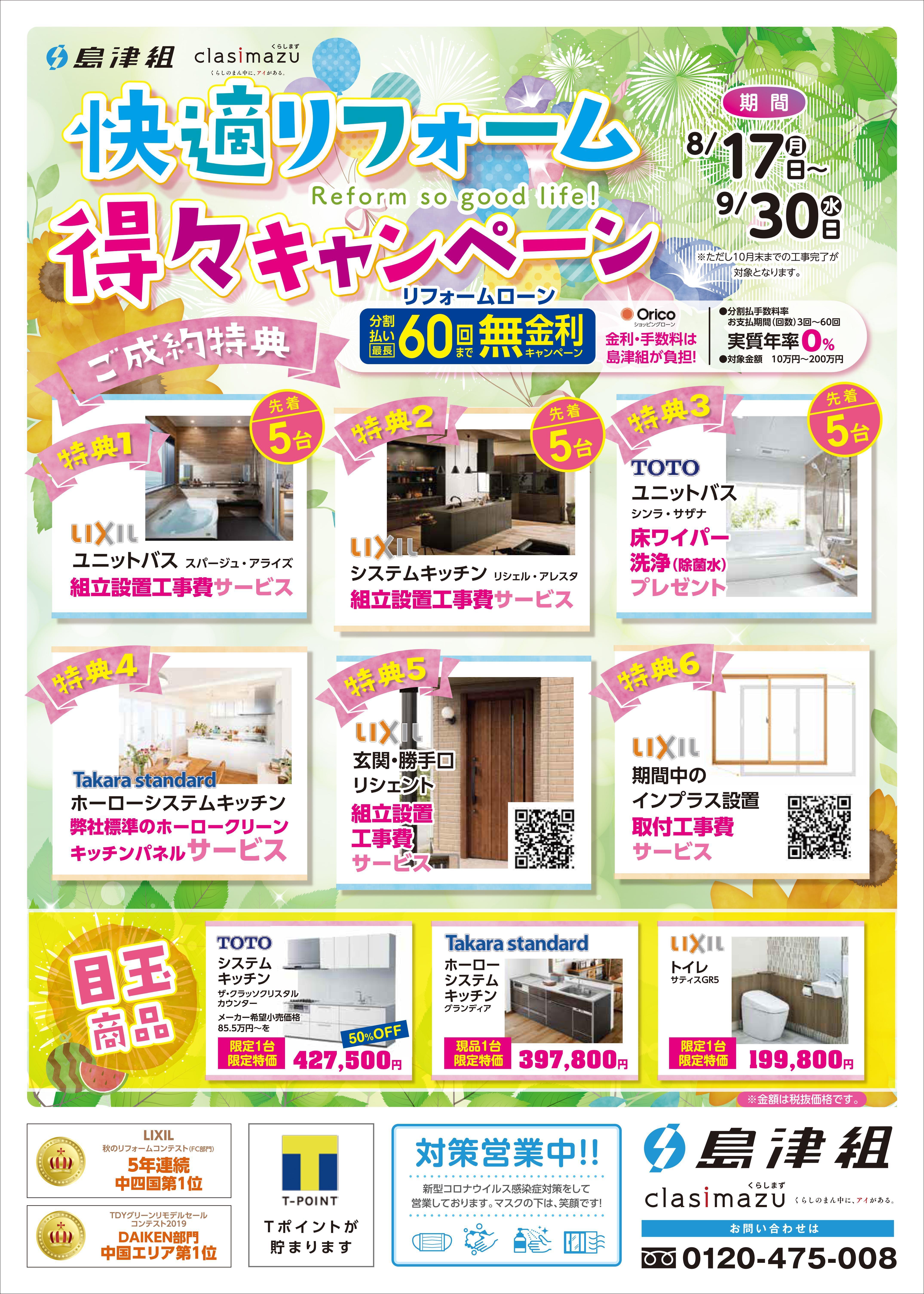 『快適リフォーム得々キャンペーン!』対象商品のご紹介です。