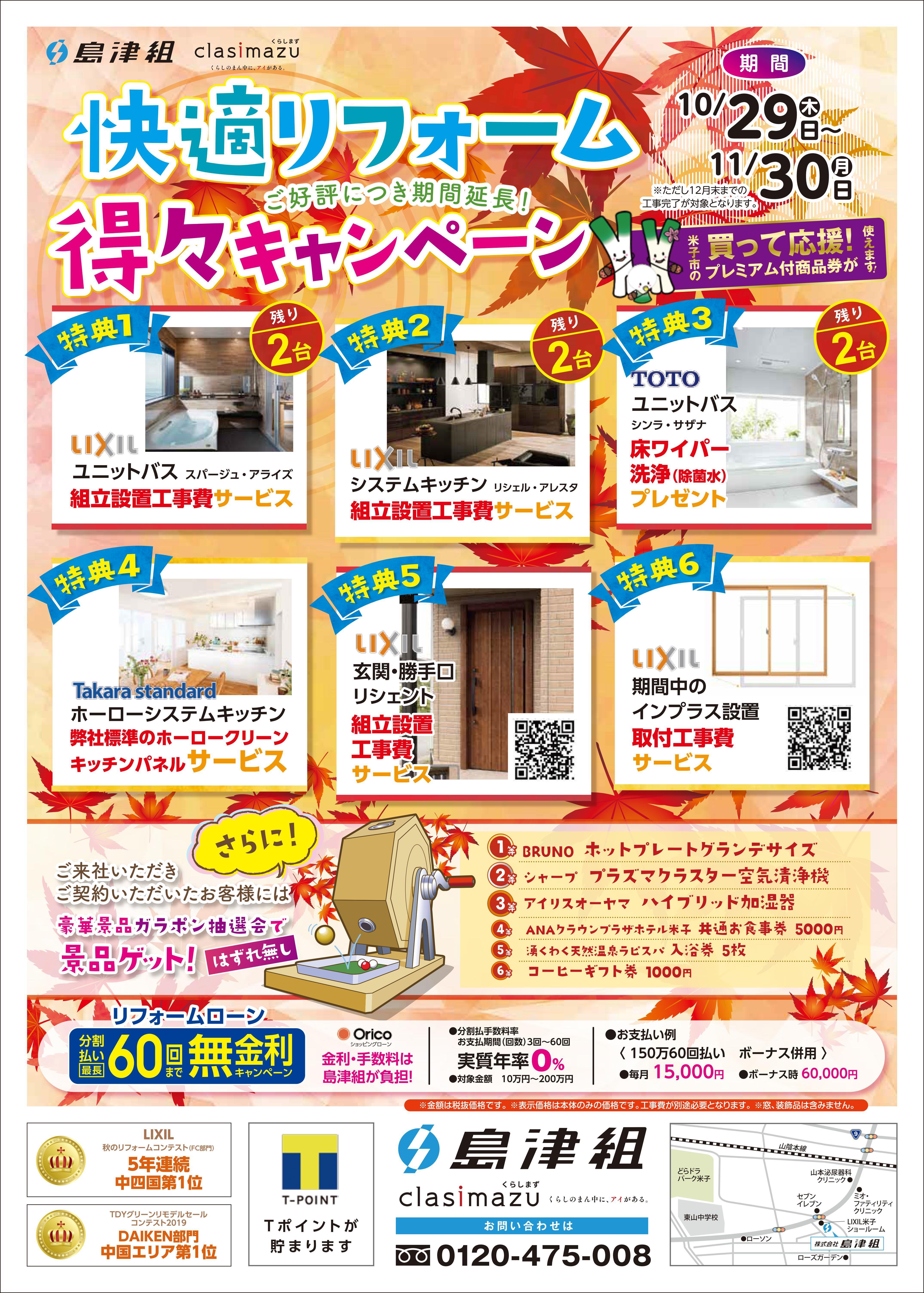 『快適リフォーム得々キャンペーン』のご案内です♬