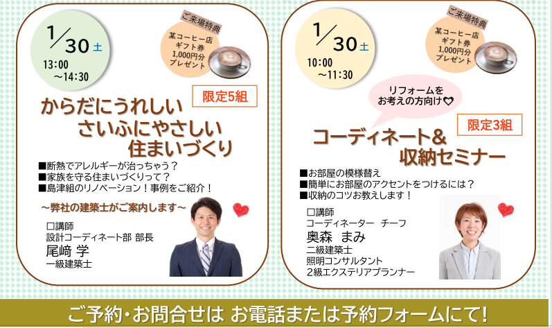 1/30(土)は、午前も午後も『住まいづくりセミナー』を