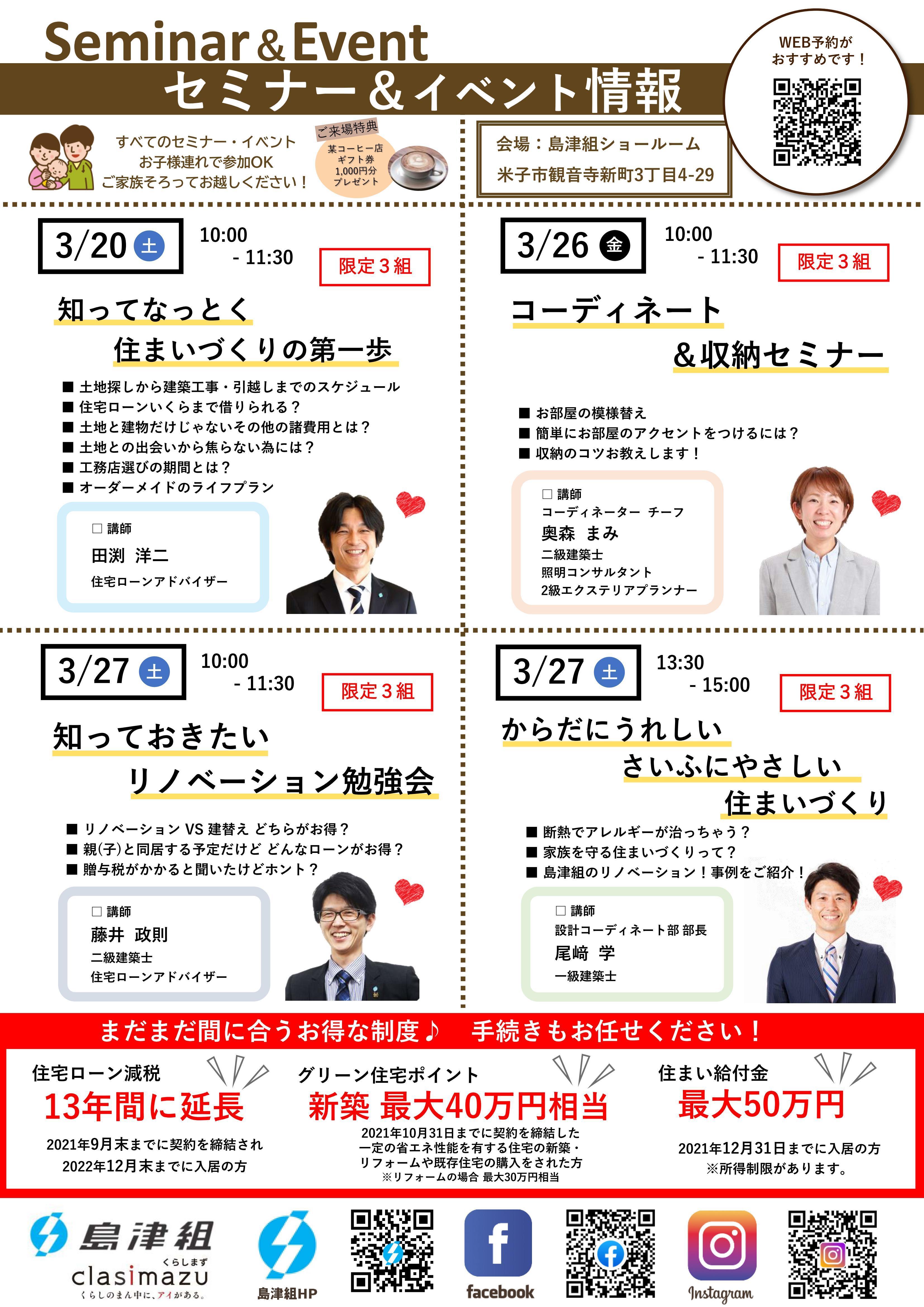 3月のセミナー開催日程のお知らせです!