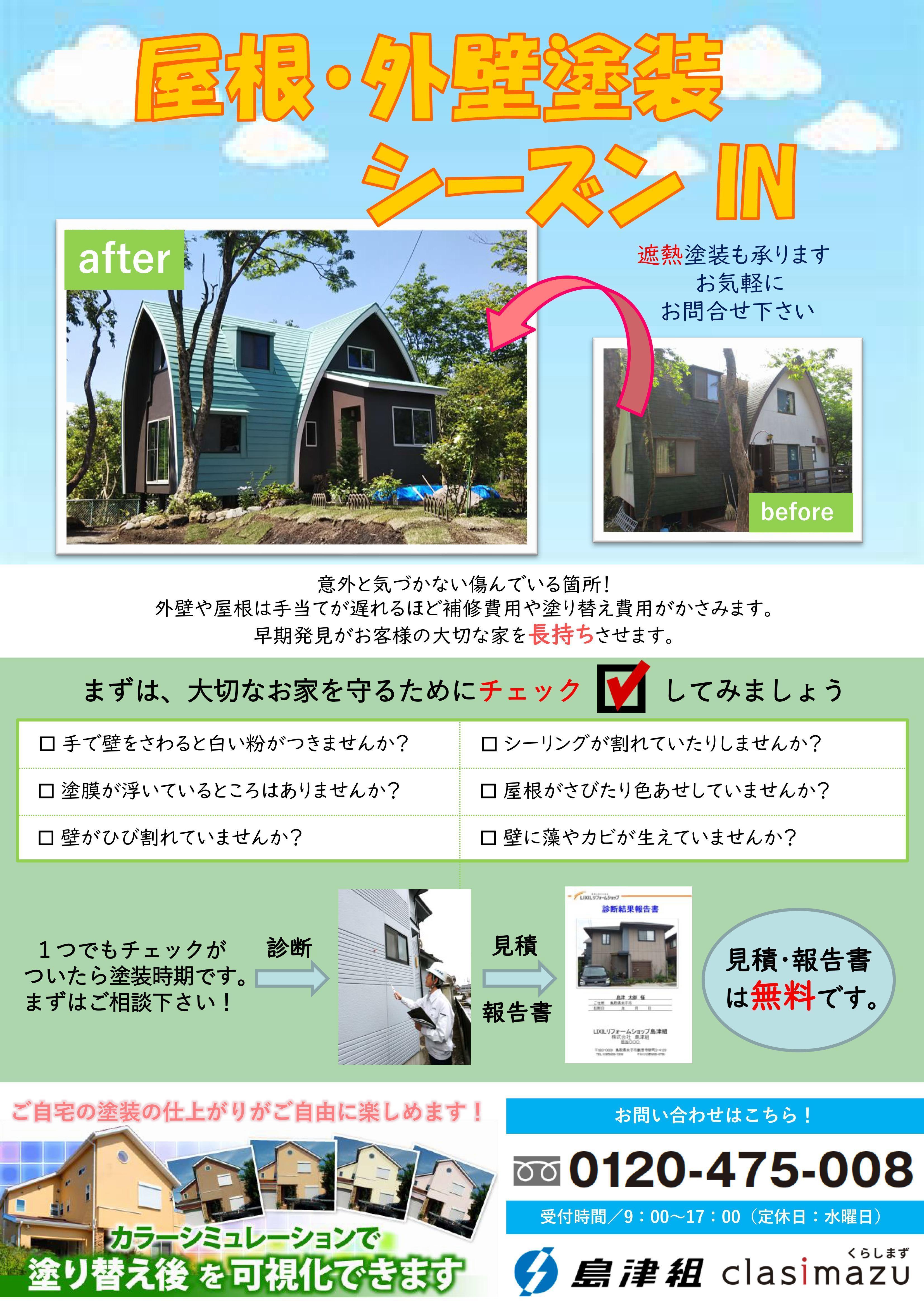 屋根・外壁塗装キャンペーン! (1.3 MB) 一覧へ戻る