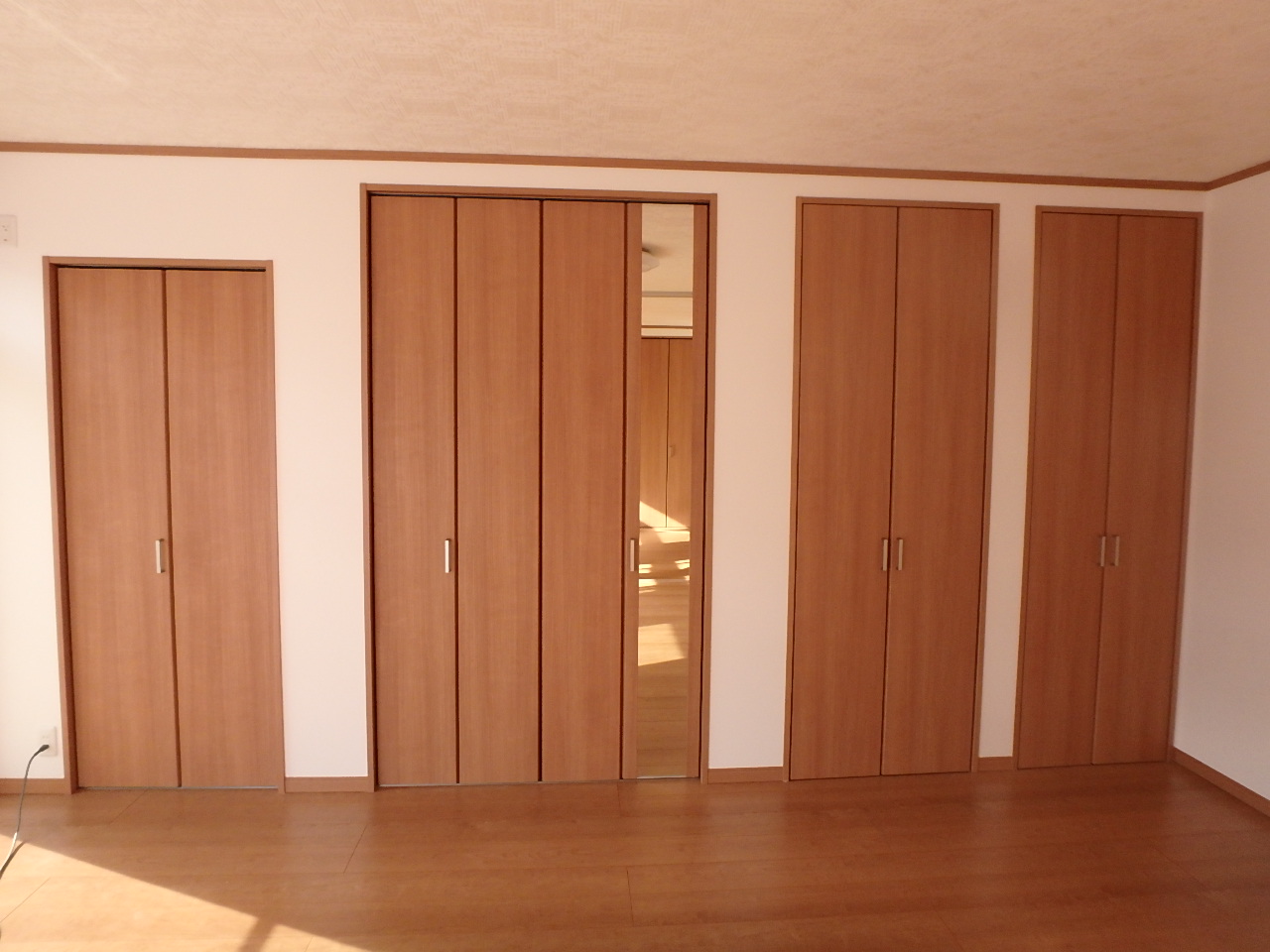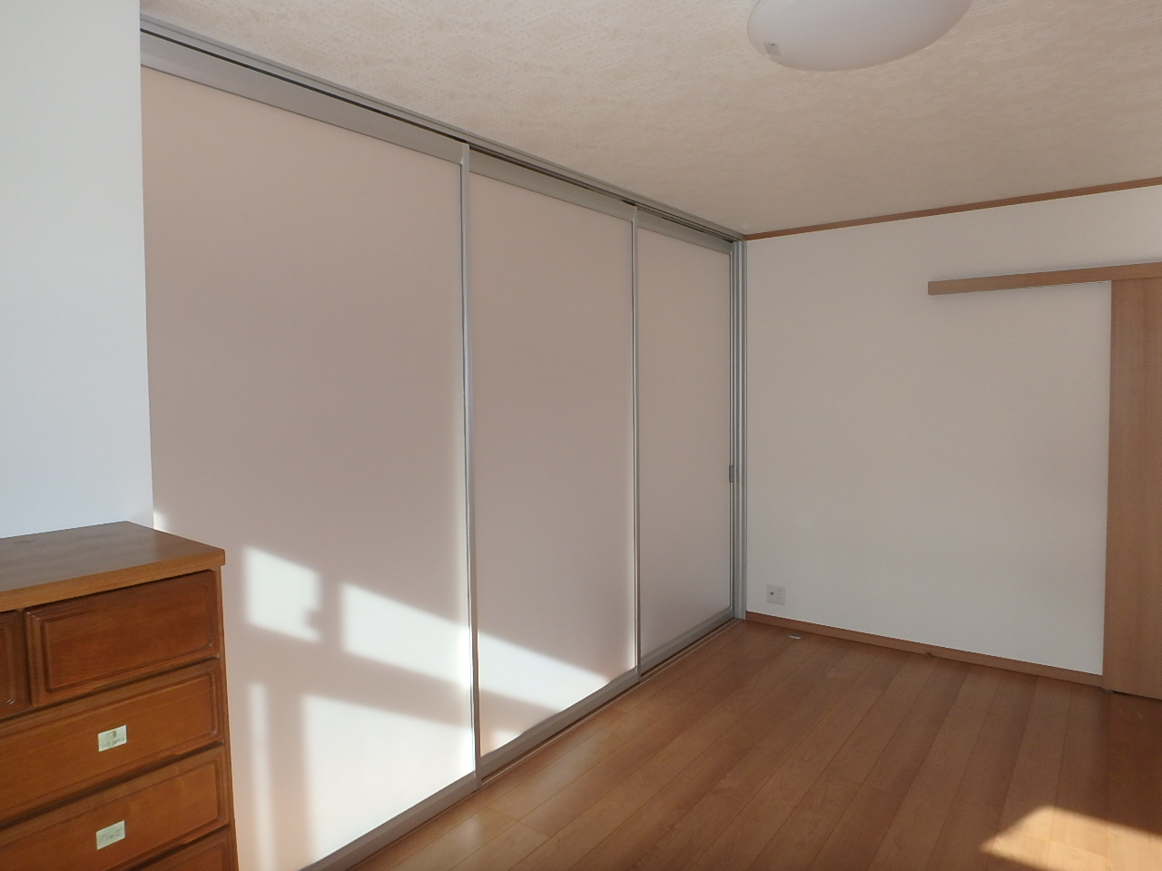 6畳の二つの和室を洋室にリフォーム。おしゃれな3枚引戸を開ければ大きなひとつの空間に。外壁、トイレなどもリノベーションしました。
