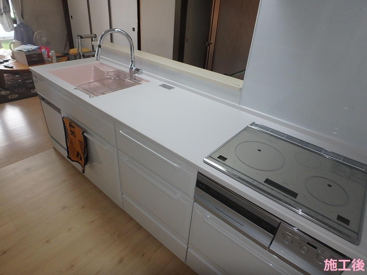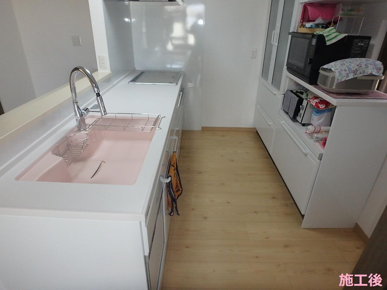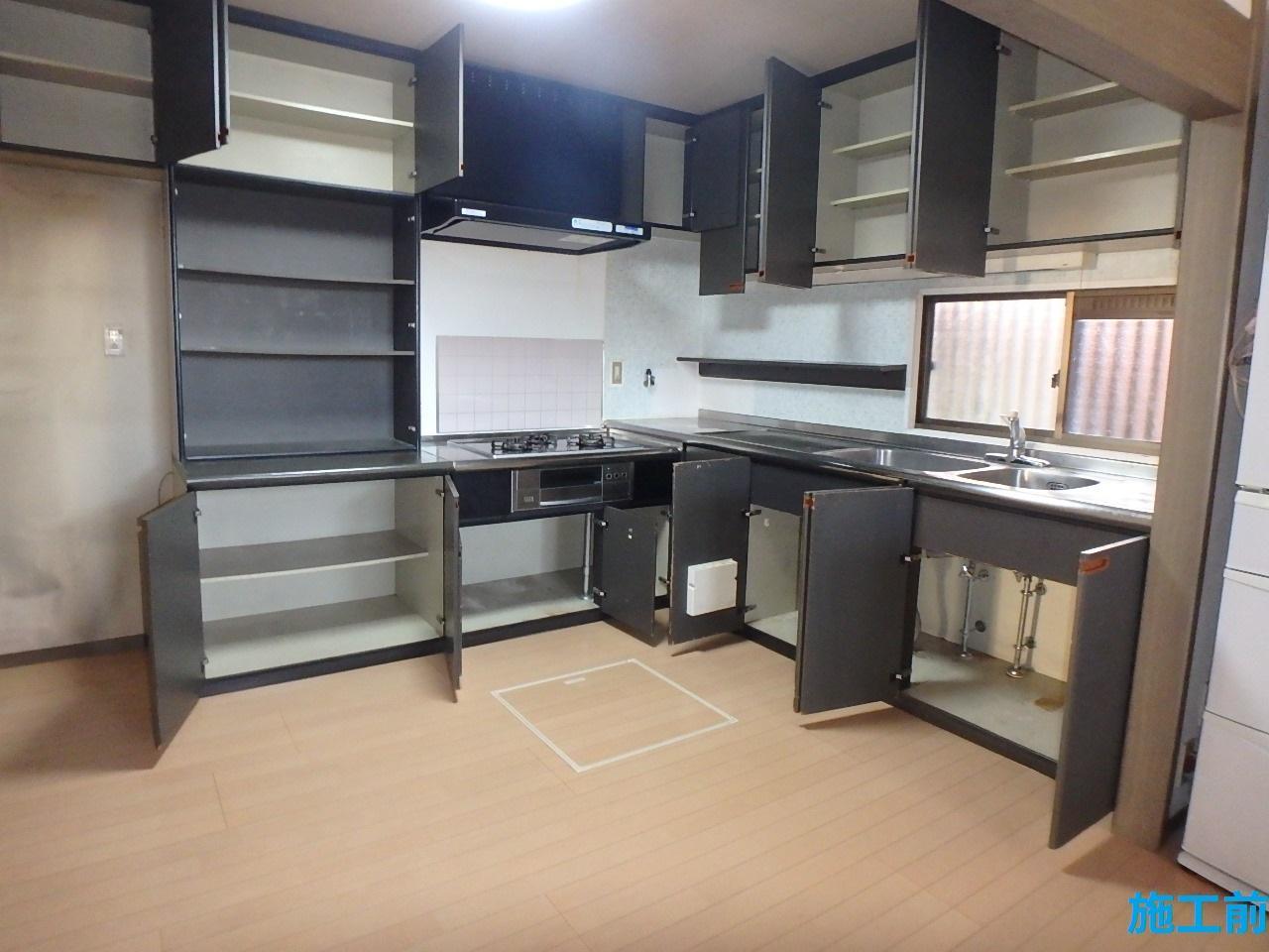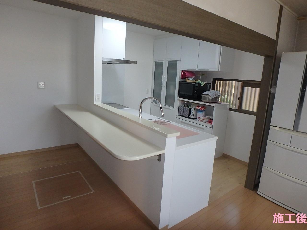 子供たちが独立し、生活様式が大きく変わることで壁付けの大きなL型キッチンは不要になりました。そこで、ご夫婦での使い勝手を検討した結果、今回の改修工事に至りました。ガスコンロからIHコンロに変更し、キッチン裏の造作のカウンターで朝食をとって頂くことで方付けも楽になりました。