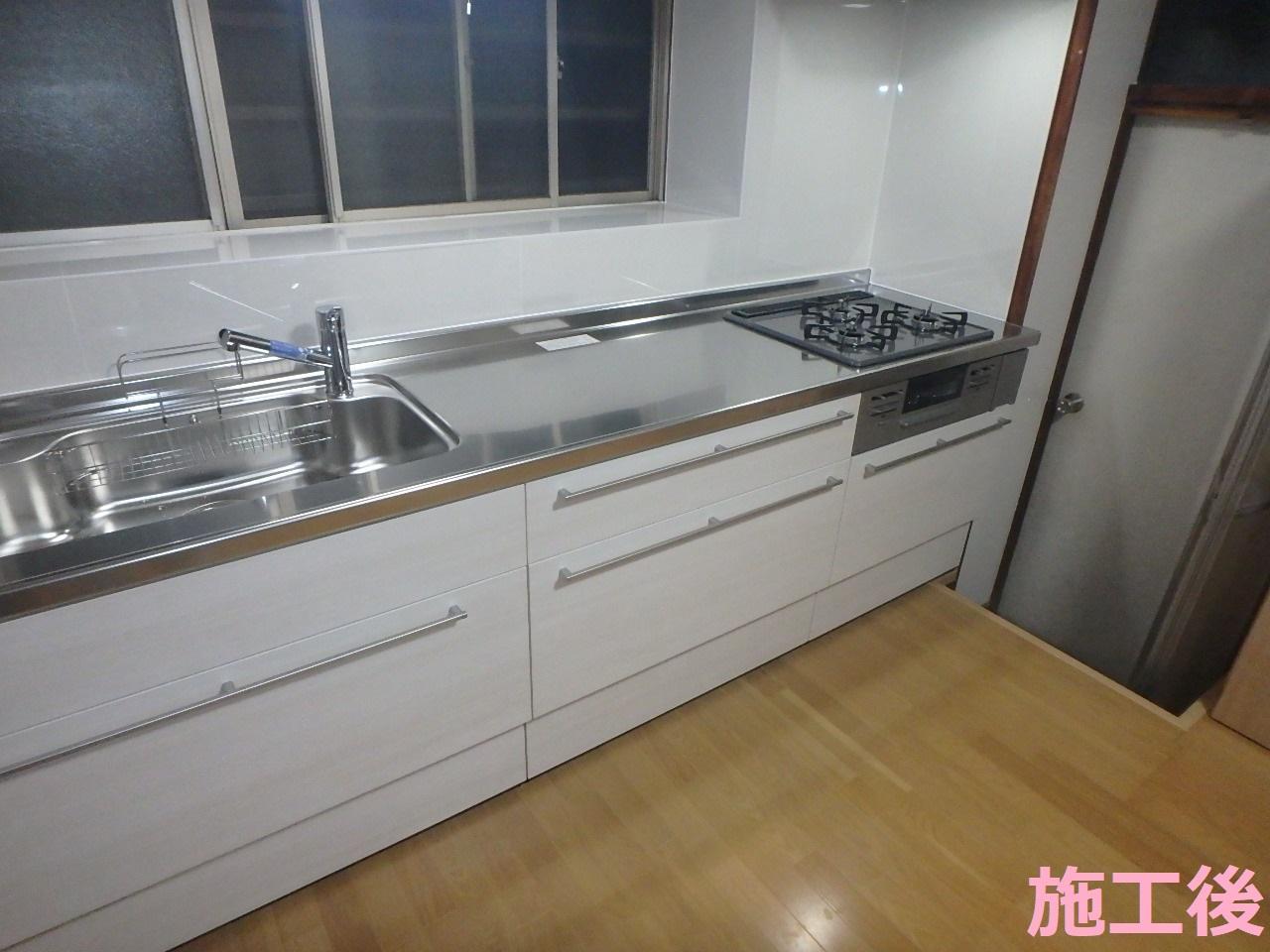 キッチンが古く、使い勝手を良くしたい為リフォームのご依頼を頂きました。ショールームにて詳細を選定し、満足していただけるキッチンとなりました。無駄なスペースを無くすために開き扉から引き出しタイプに変えた事により収納力もアップしました。
