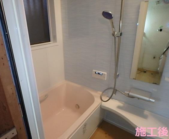 在来、タイル貼りの浴室からシステムバスに変更しました。また洗面化粧台も使い勝手の良いものに取替え、洗濯機の配置を変更することでより使いやすくなりました。解体時に腐食部を発見し、対処することで安心して過ごせるようになりました。