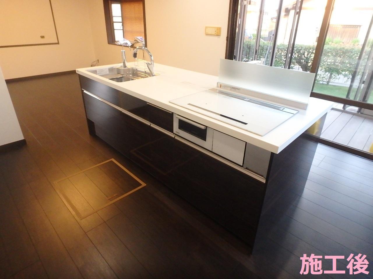 対面式だったキッチンをおしゃれなアイランド型にリフォームしました。アイランドキッチンは視界を壁に遮られることがないため、広い視野の中で家事や料理を楽しむことが出来ます。家族とのコミュニケーションがとりやすいのも大きなメリットです。