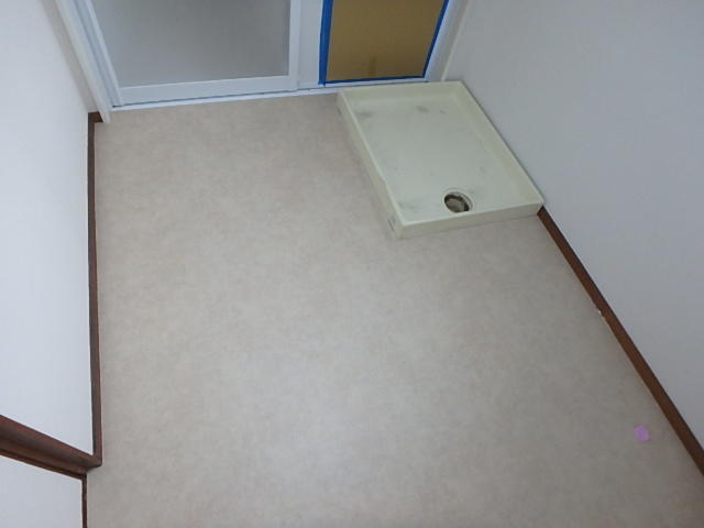 M様もクロスとクッションフロアーを貼替えしました。あとは元々ありました洗濯機と洗面化粧台を戻せば、工事完了です。