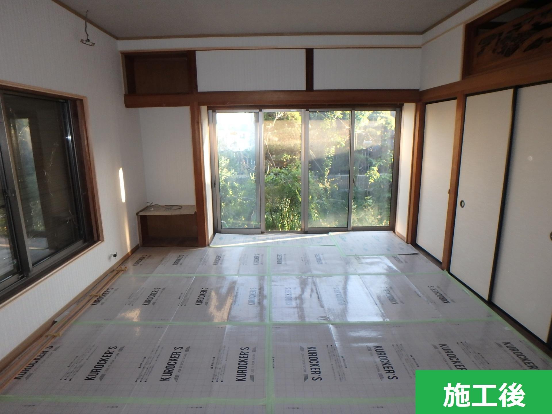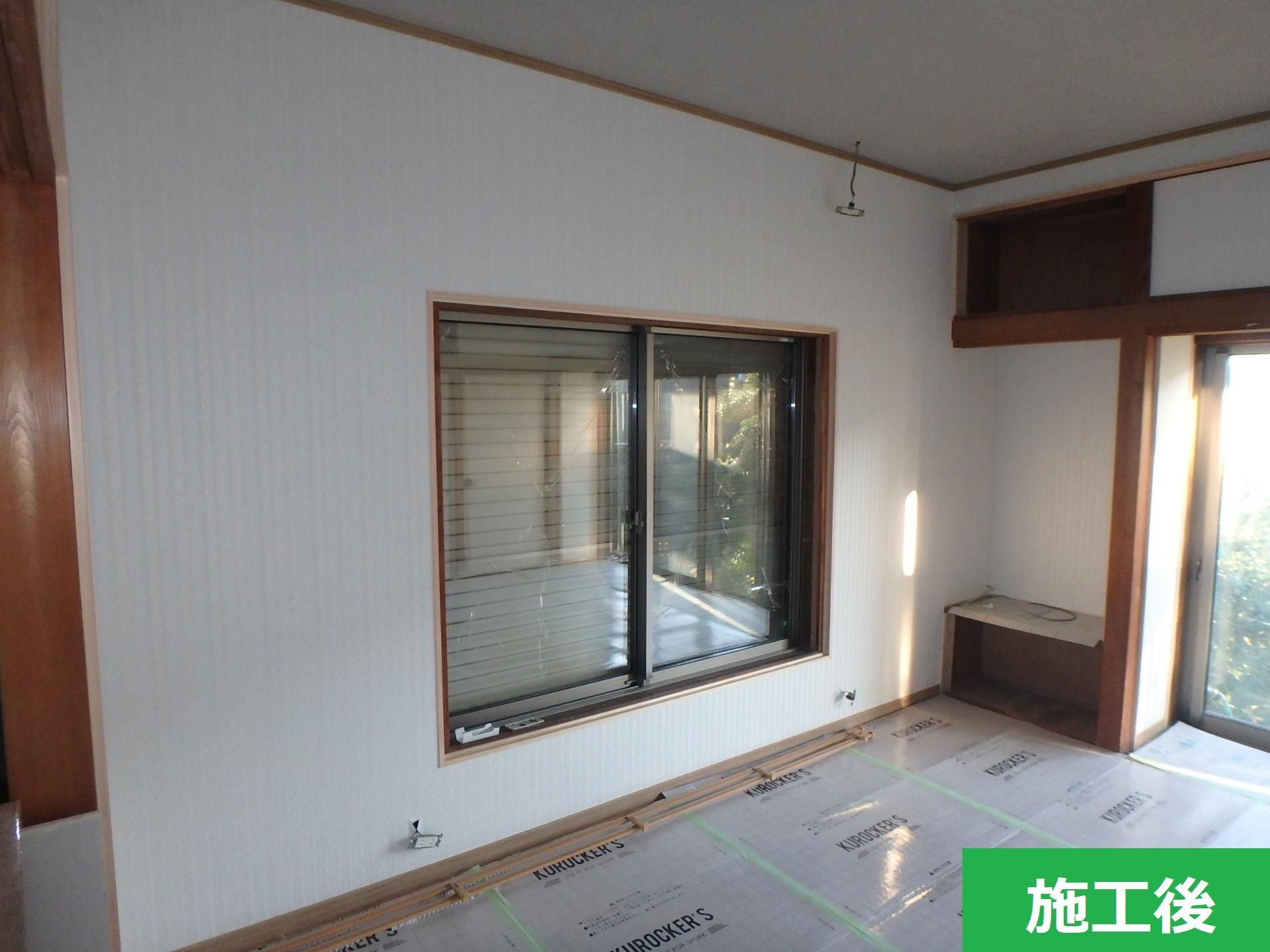 和室の壁がポロポロと落ちてくるようになり、お手入れ簡単なクロスに変えました。部屋が明るくなりました。窓はすりガラス調のインプラスを設置。部屋があたたかくなると同時に防音対策にもなり、とても静かになりました。