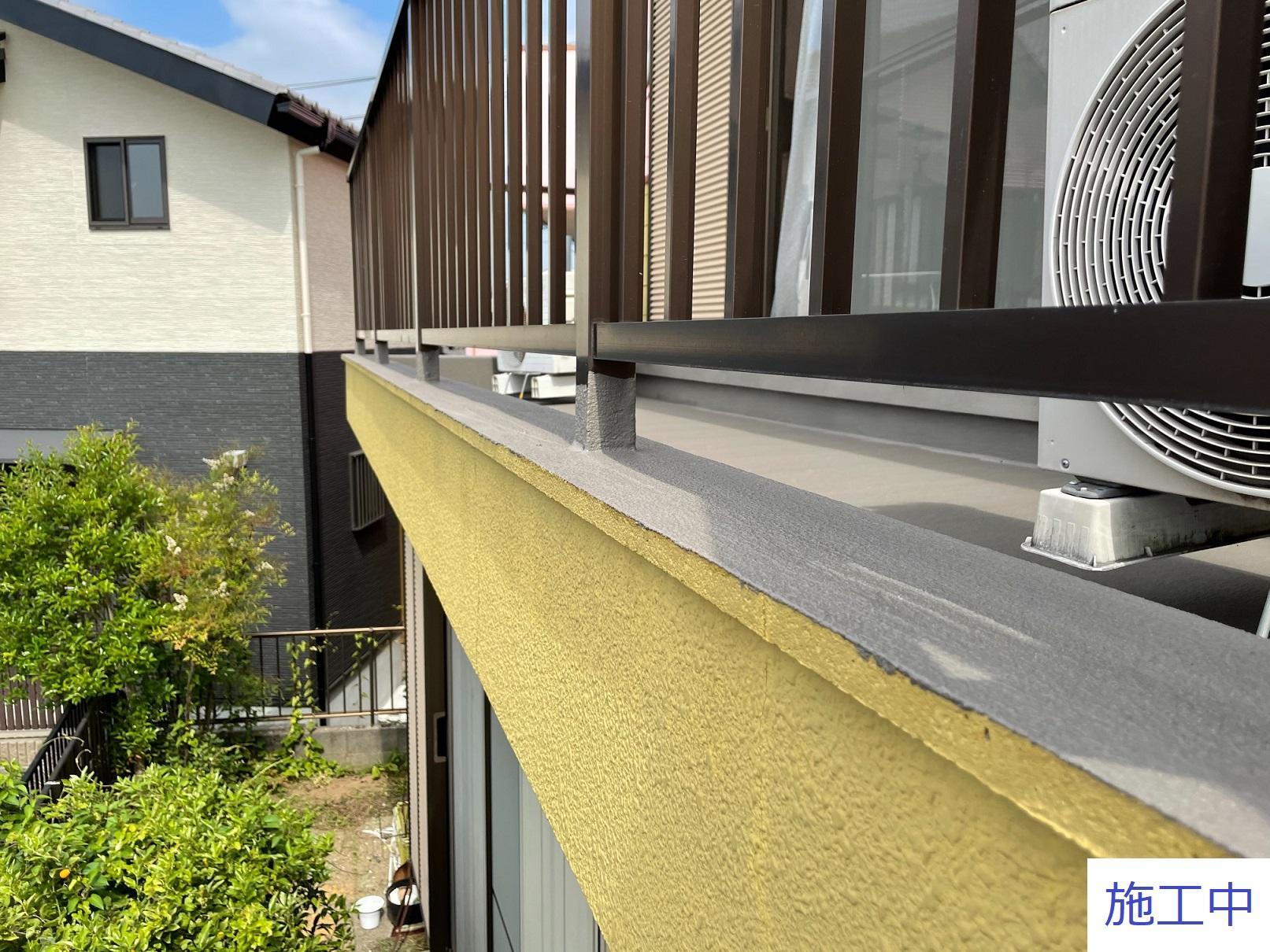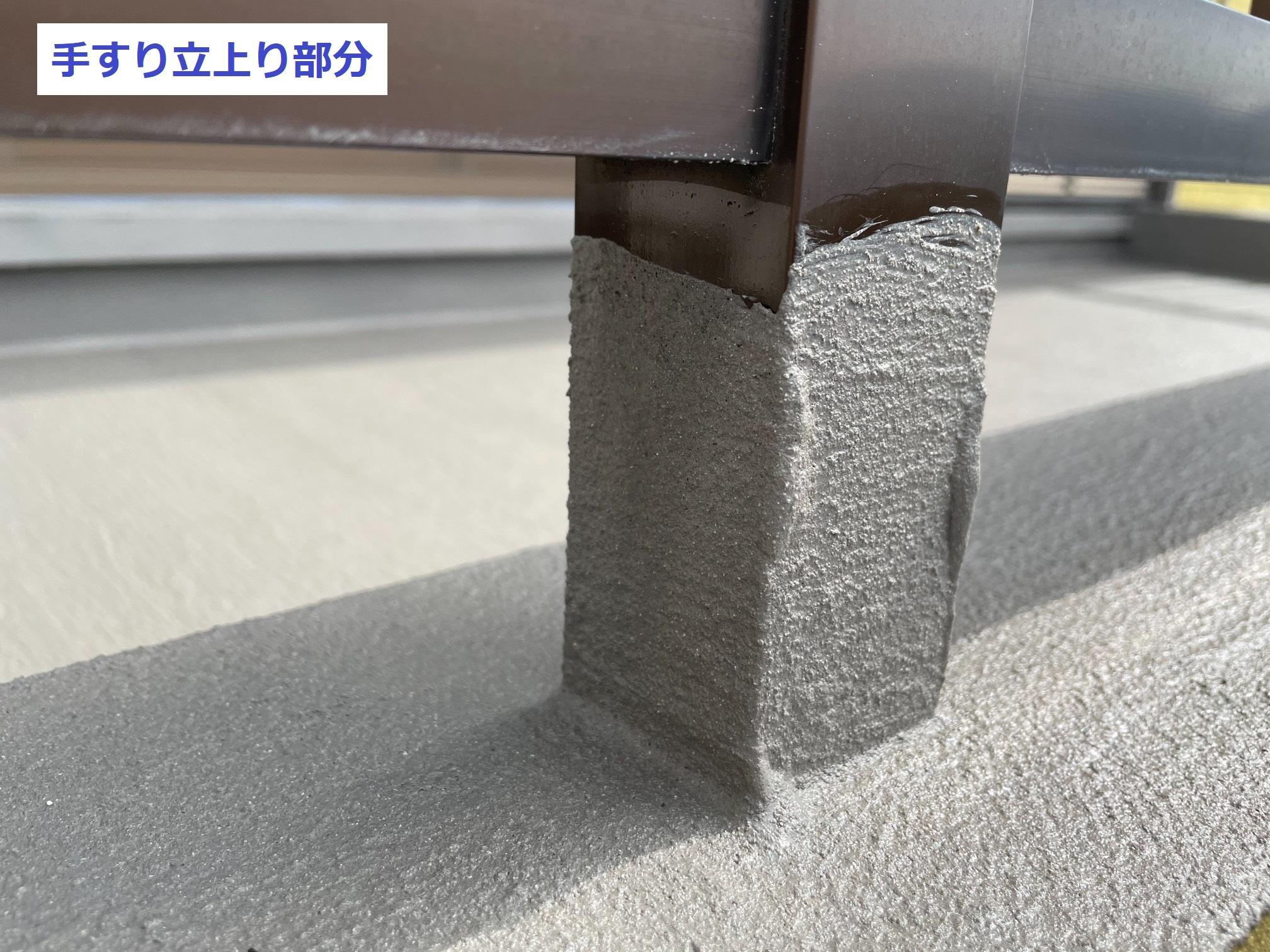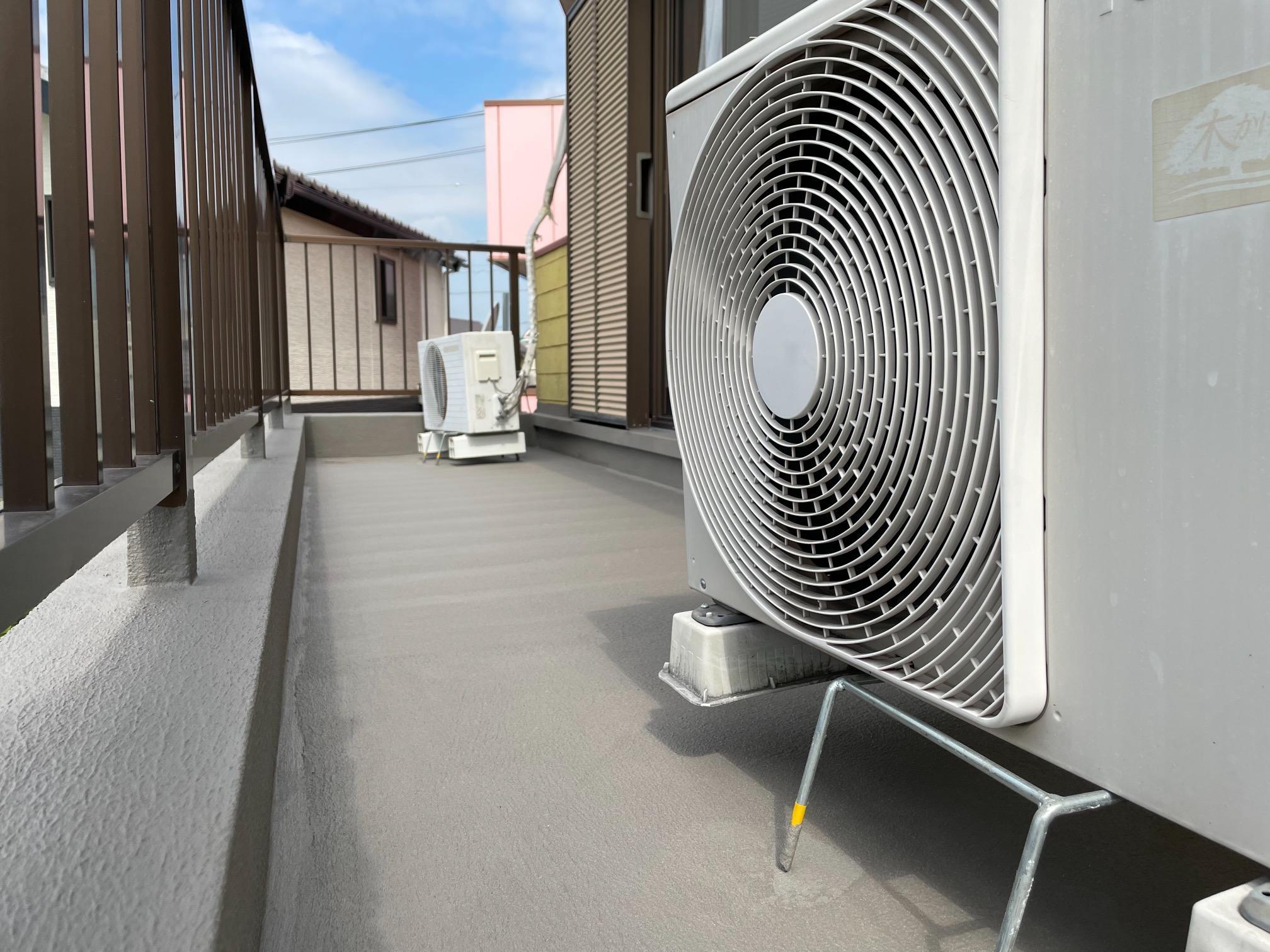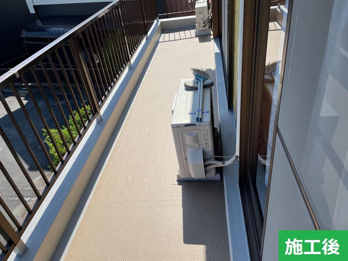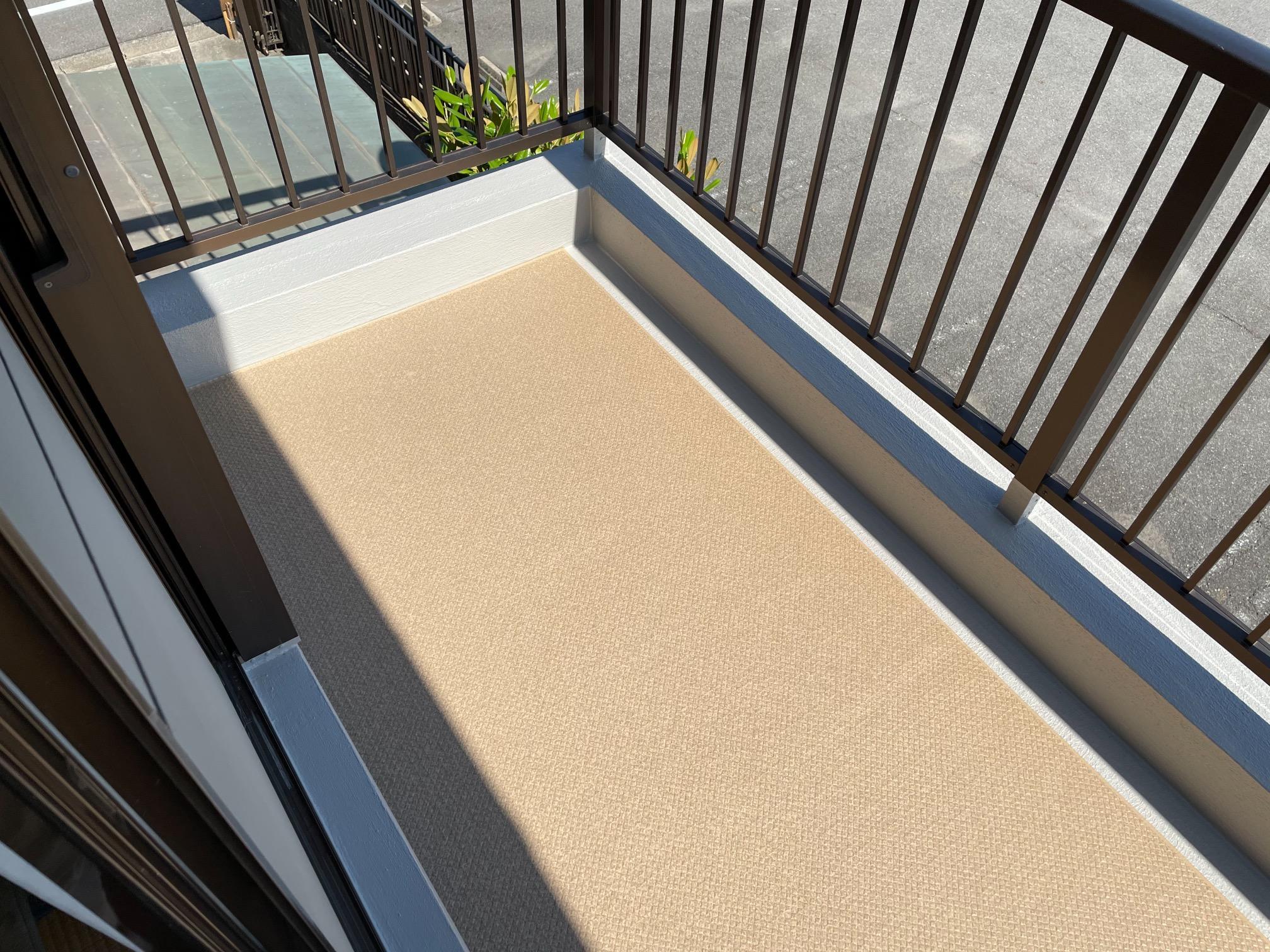 ベランダの防水が切れ、痛みが出ていたことをきっかけに、セメント防水塗料を塗り、その上に防滑シートを貼って雨風や日差しに強い仕上げをしました。 小さな隙間から雨が入らないように、手すりの足元やサッシ周りなどはシーリングで塞ぎました。これで大雨でも安心です。