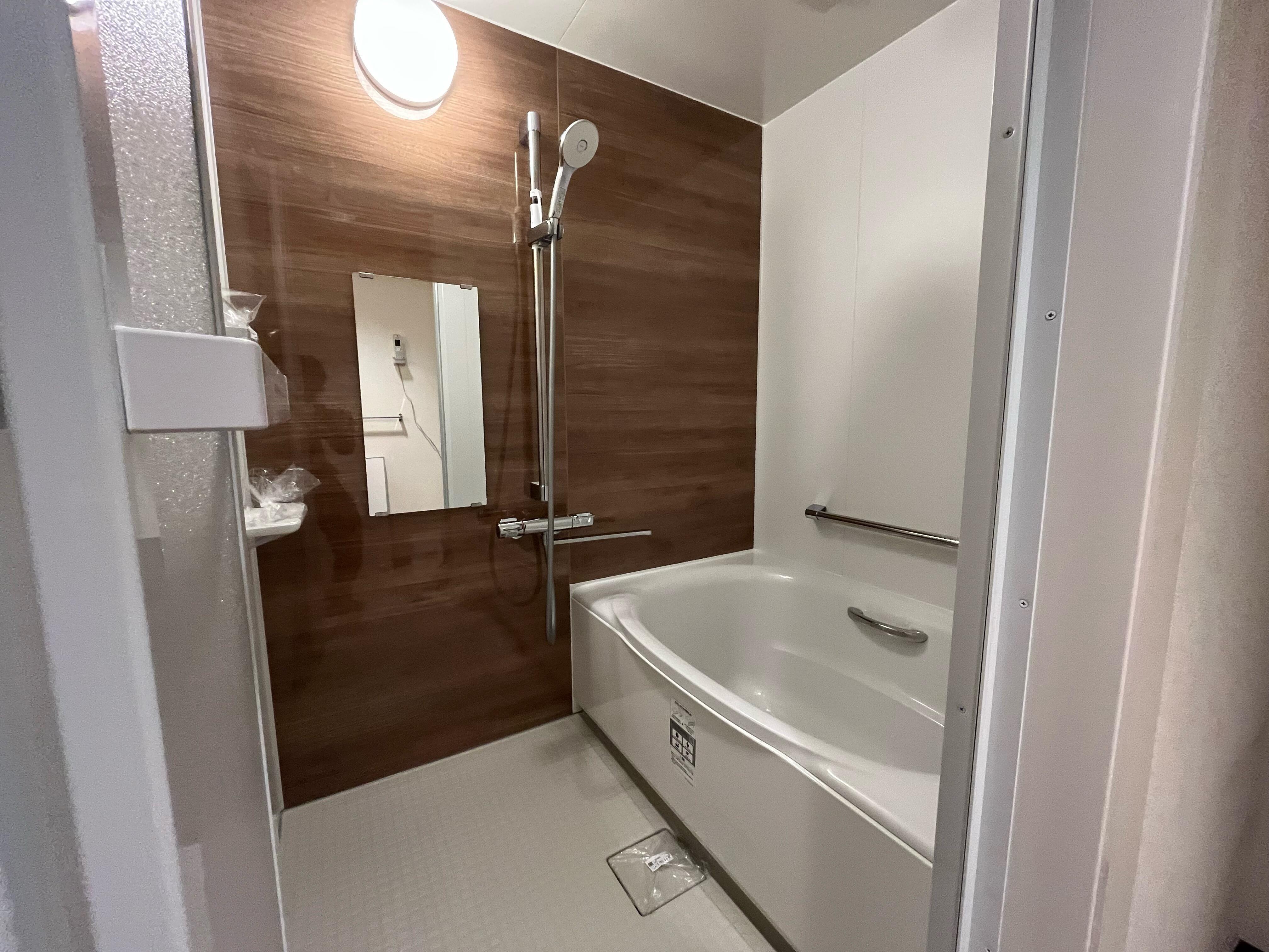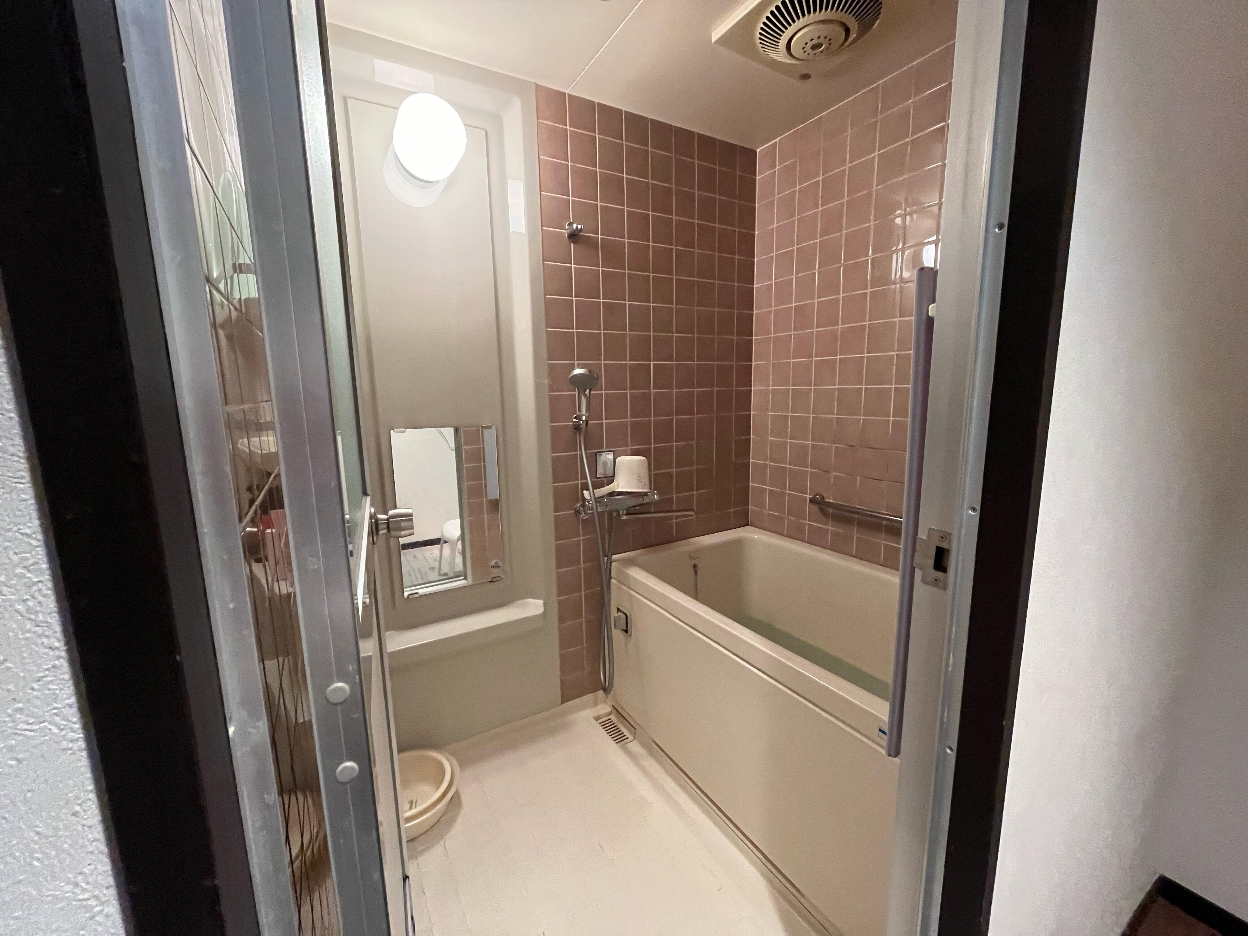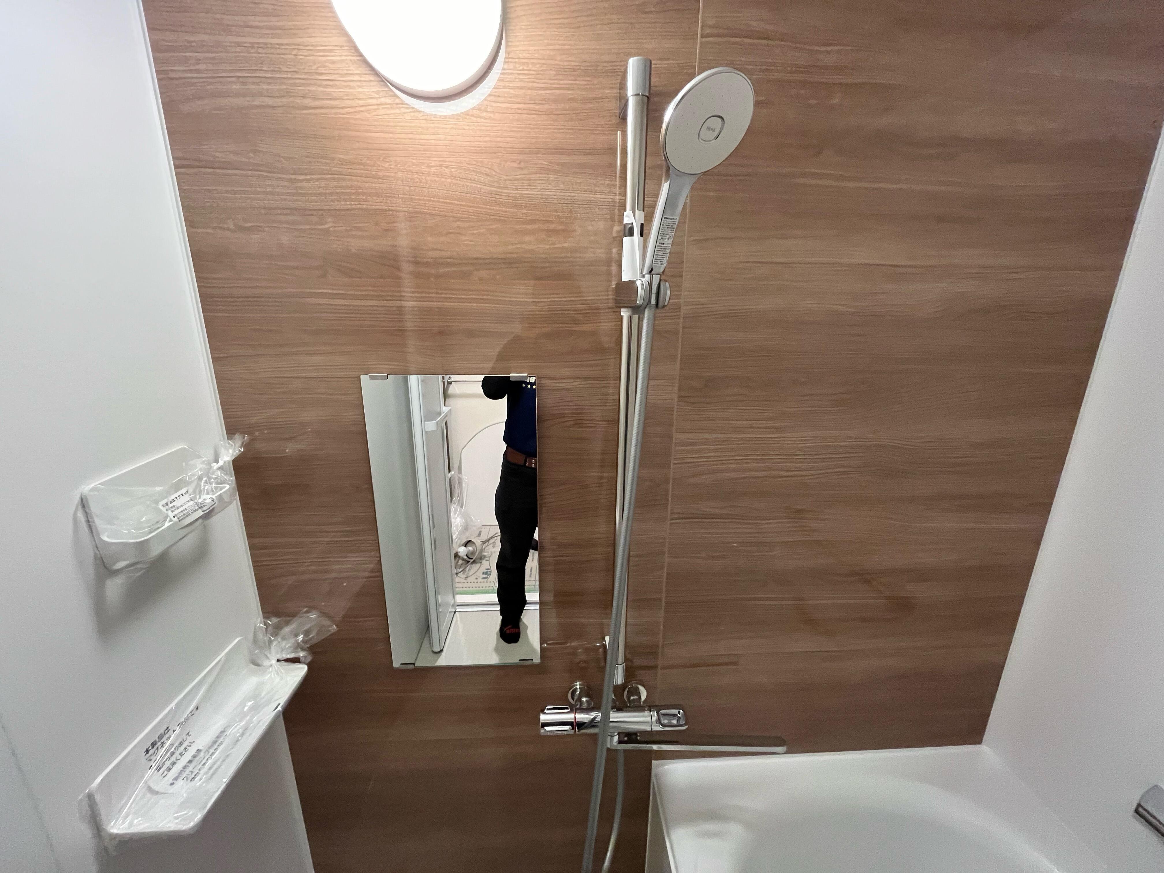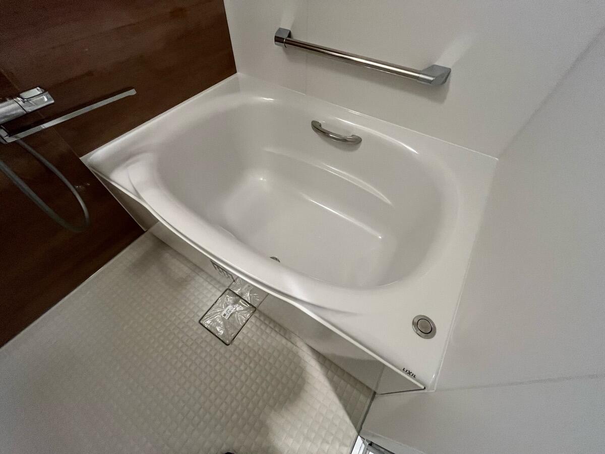 築30年以上のマンションの14階の浴室の工事です。 浴槽が深く、またぐのが大変だった浴槽が気になって、リフォームを決意されました。リクシルのマンション用のユニットバス「リノビオ」です。