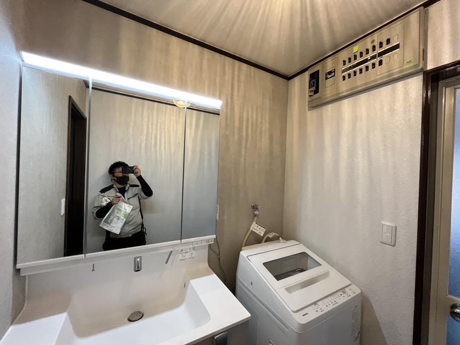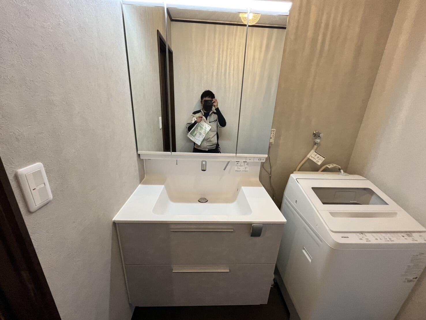 洗面化粧台をリクシルのクレヴィに交換しました。ショールームに足を運んで頂き、仕様や色をお決め頂きました。