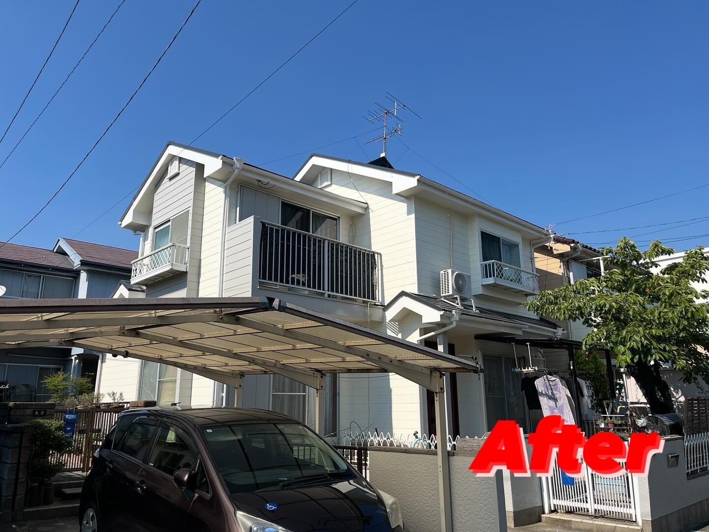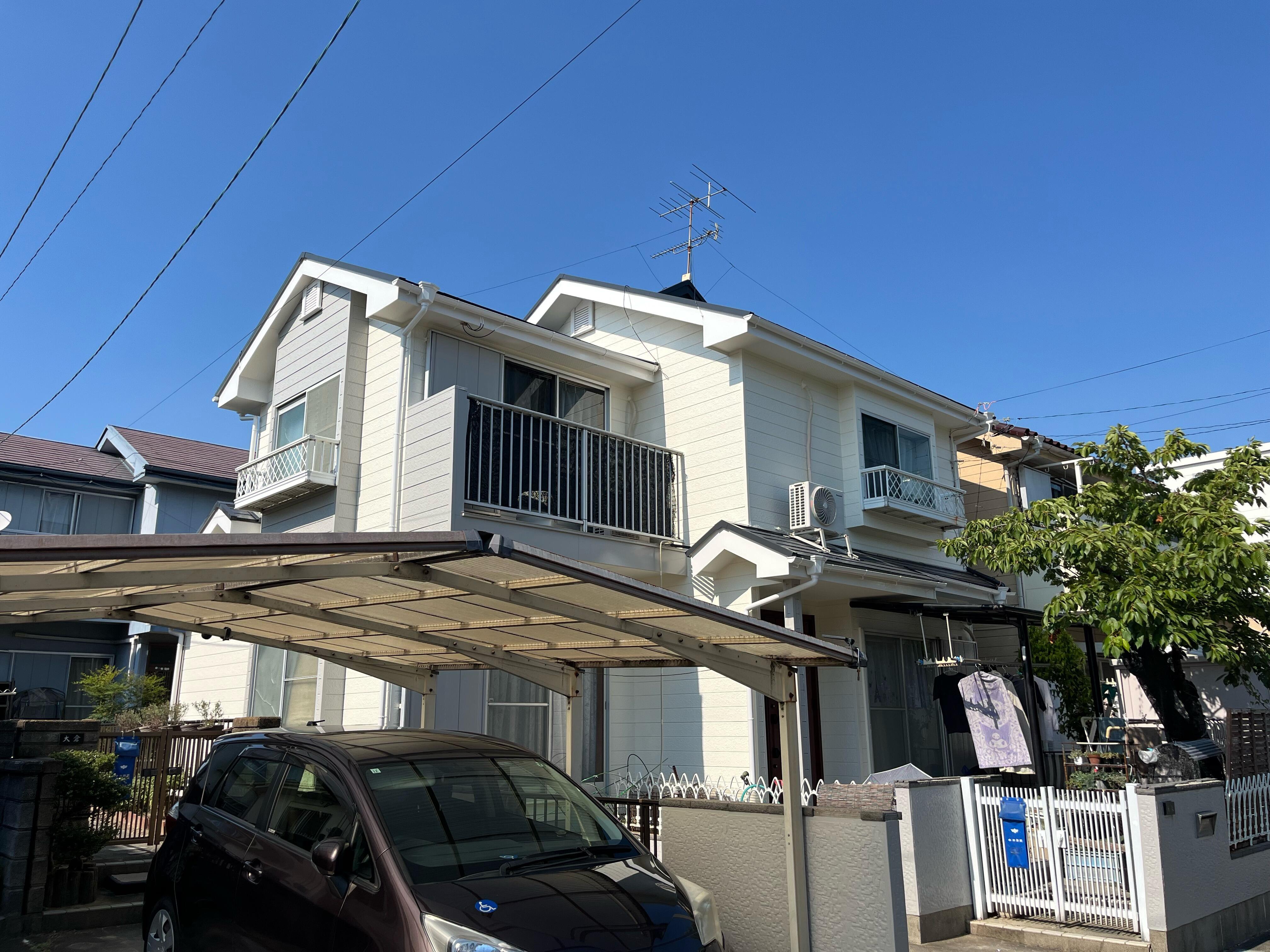 外壁と屋根の汚れが気になり始めたことをきっかけに、塗装を決意されました。 奥様と色の打ち合わせを何度も重ね、とても明るく、きれいな色に仕上がりました。