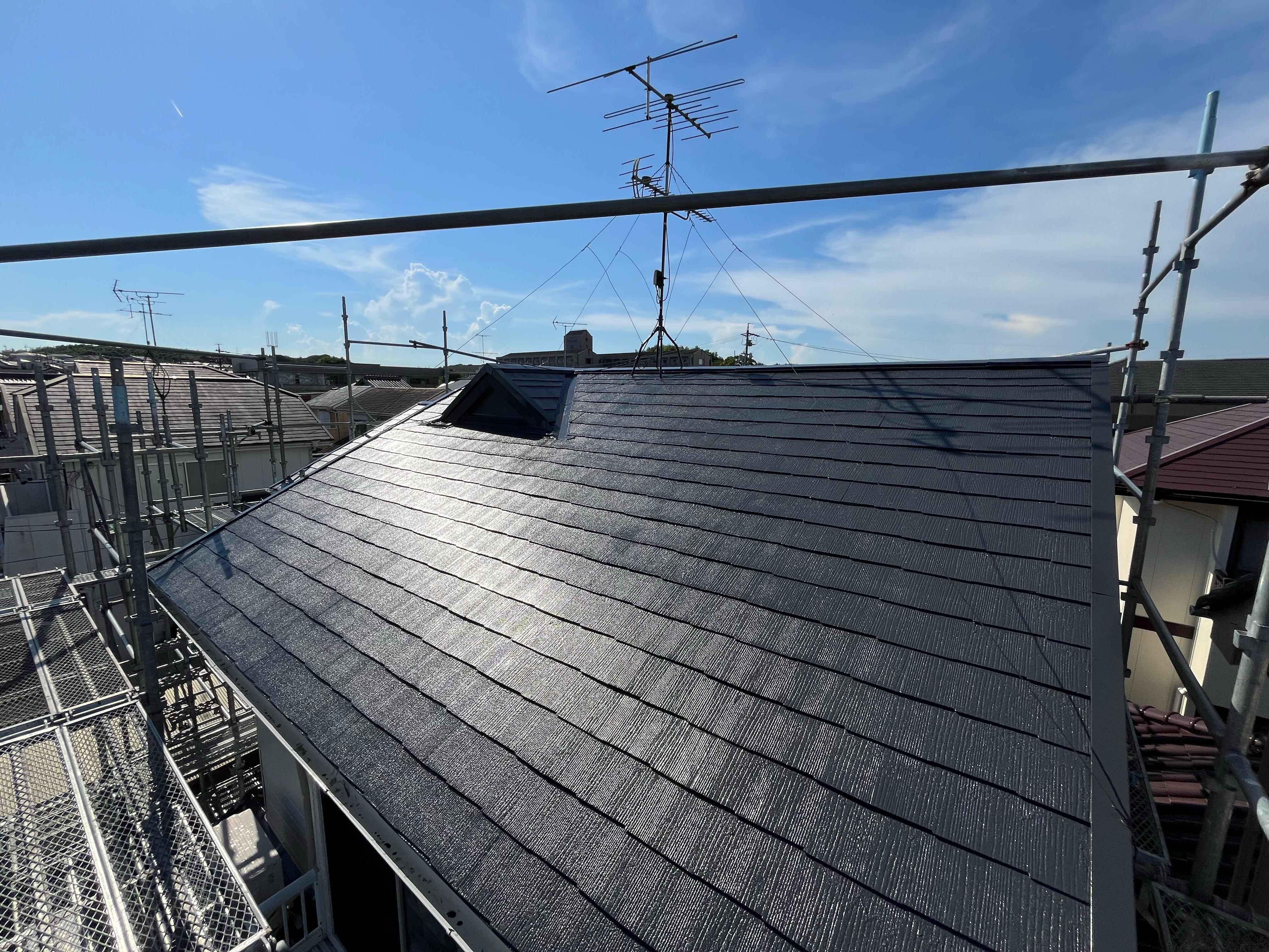 外壁塗装は足場を解体し、ベールがとれた時が感動です。 今回も優しい色に仕上がり、私までうれしい気持ちになりました。