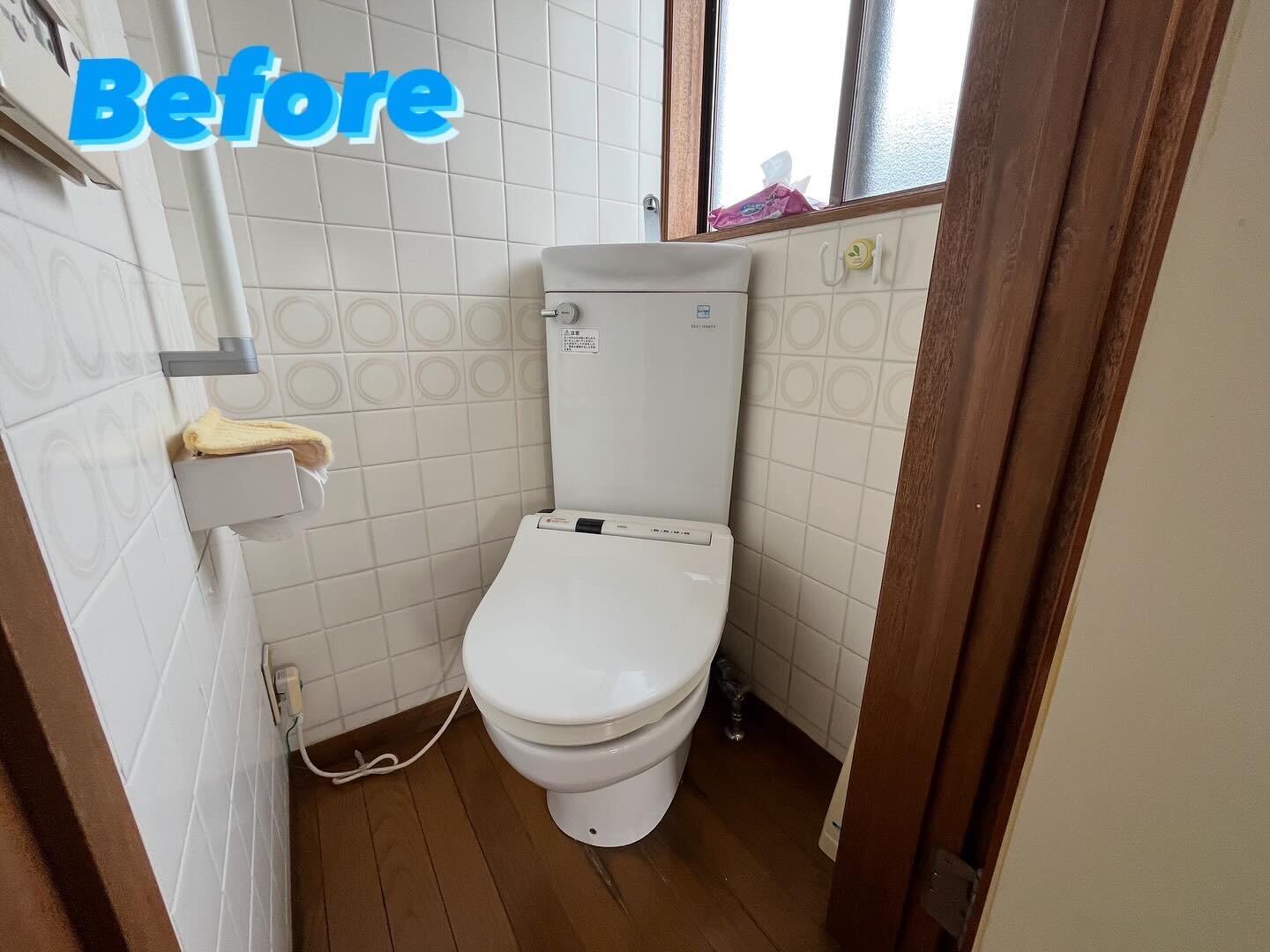 漏水の為床が少し傷んでいましたが、腐ってペコペコしている様子はなく、お施主様も床はそのままで。ということでしたので、今回はトイレのみの交換となりました。