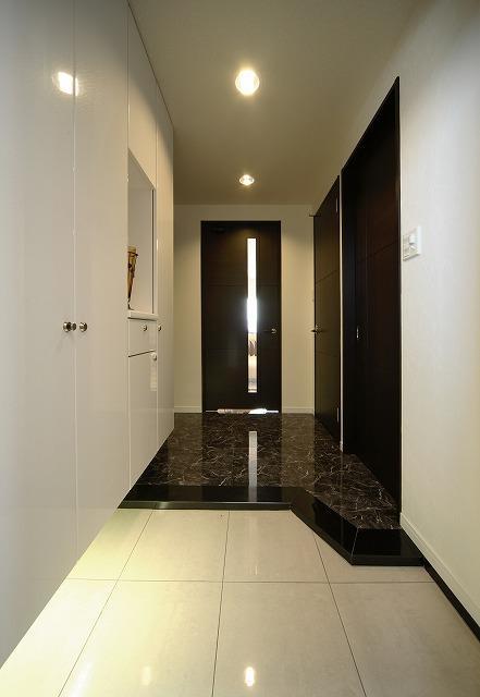お住まいの顔とも言える玄関スペース。高級感のある、モノトーンでまとめました。