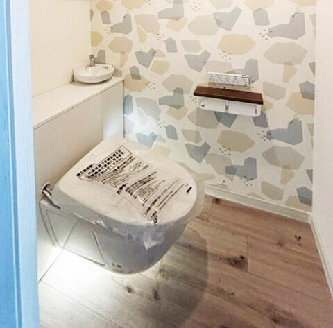 リフォレで床のお掃除がらくらく、清潔に保てます。また、少し小さめの手洗いやクロスによって楽しい空間になりました。