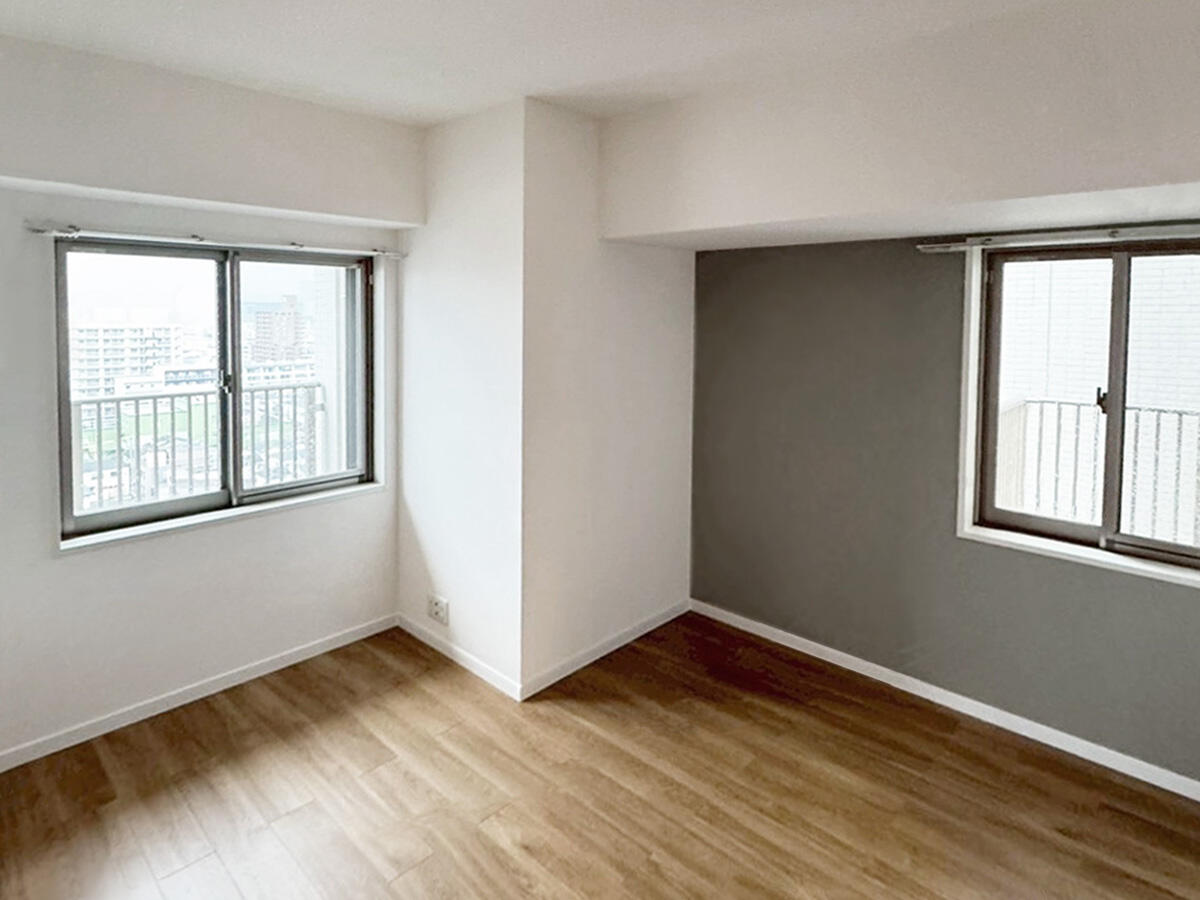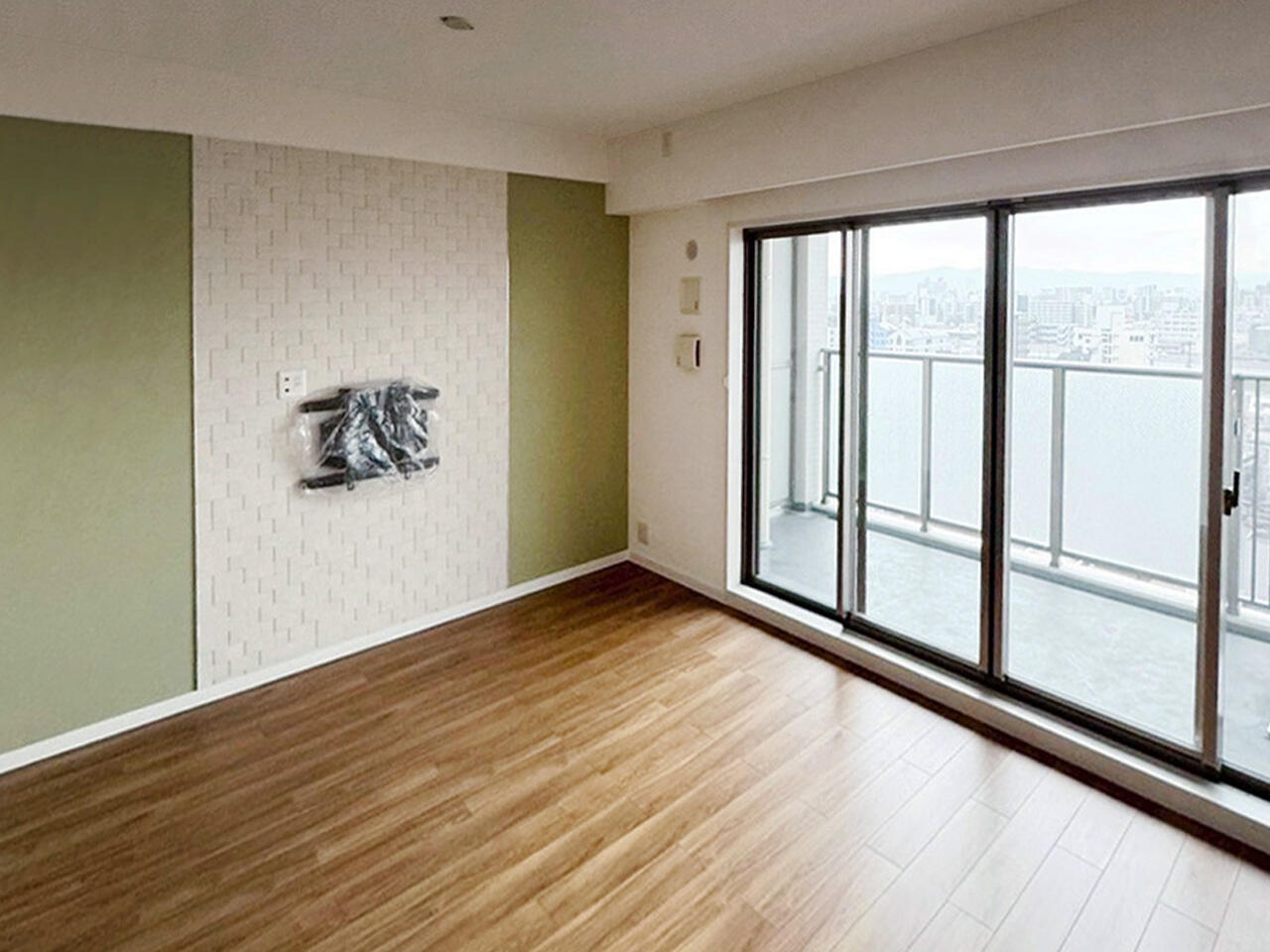 各お部屋にはアクセントの壁面を設けるコンセプトにて必要なリフォームと美装で美しく蘇らせました。