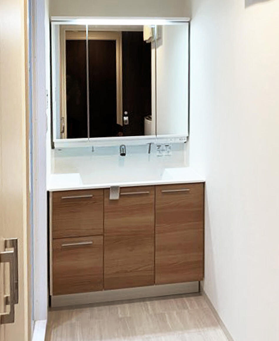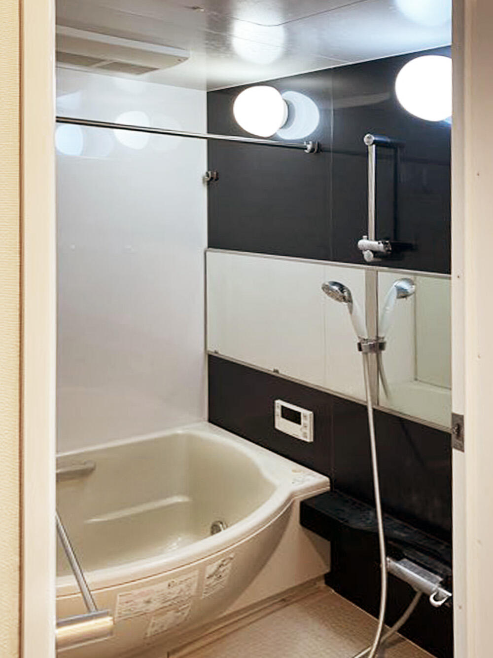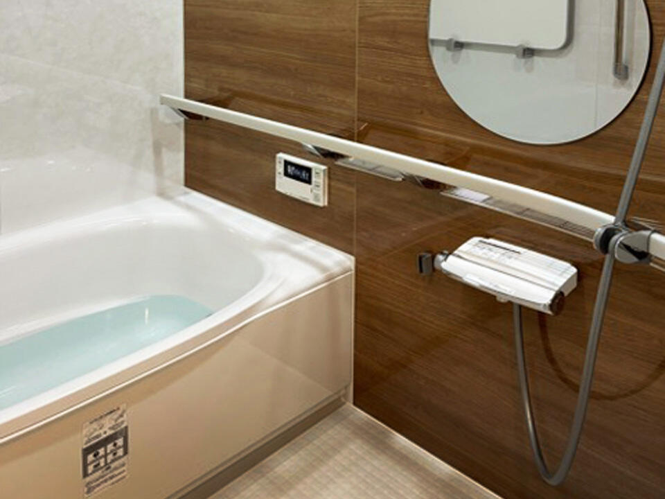 経年劣化が気になる浴室のリフォームをご決断され、この機会にトイレ、洗面化粧台もより安全に、より清潔に使用できるよう入れ替えることにされました。浴室は快適にノンストレスにバスタイムを楽しむため、フレキシブルなマグネットタイプのミラー、リラックスできるナチュラルな壁面アクセントをお選びになりました。