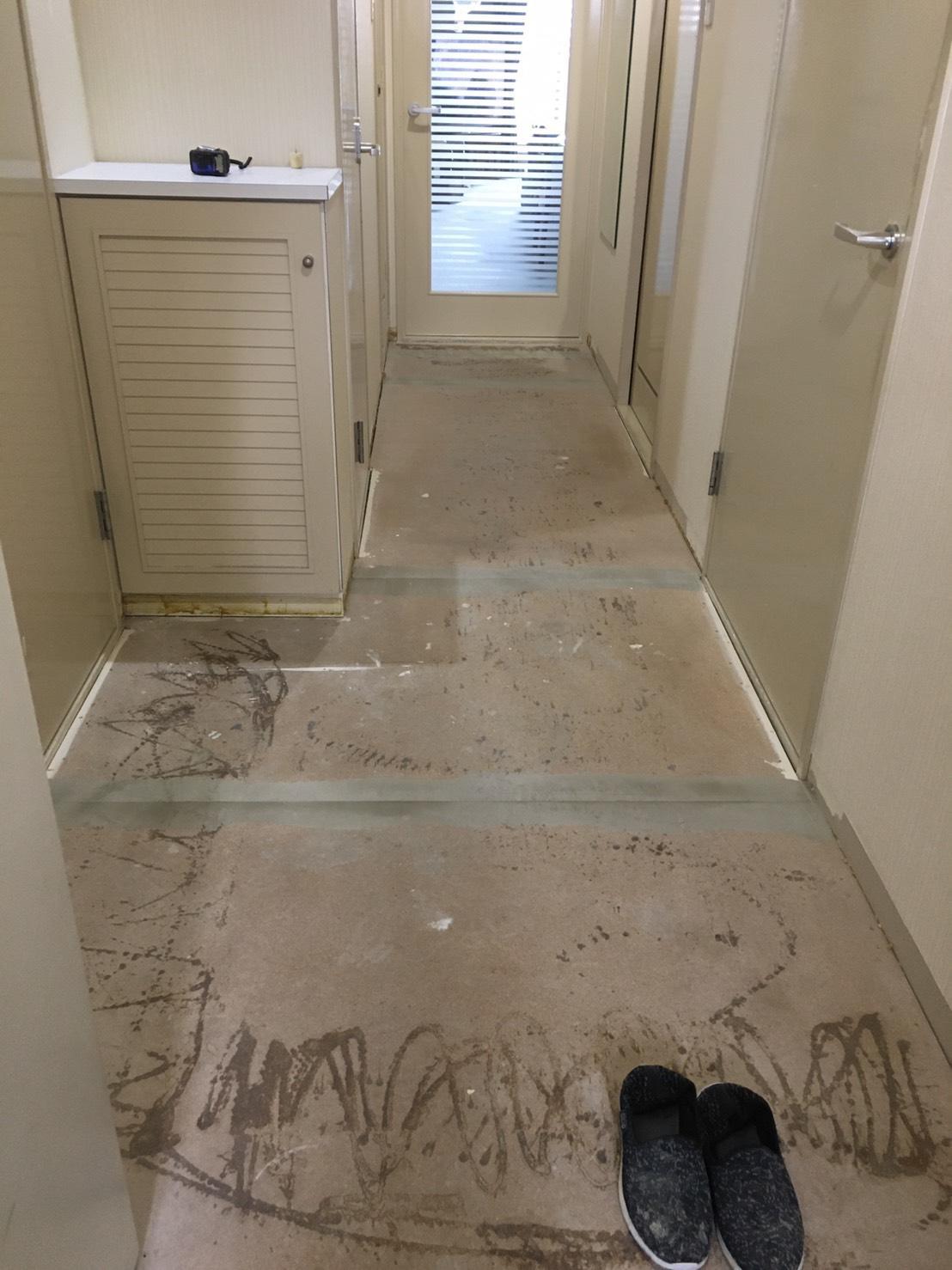 マンションの玄関廊下のカーペットをクッションフロアに貼り替えました。