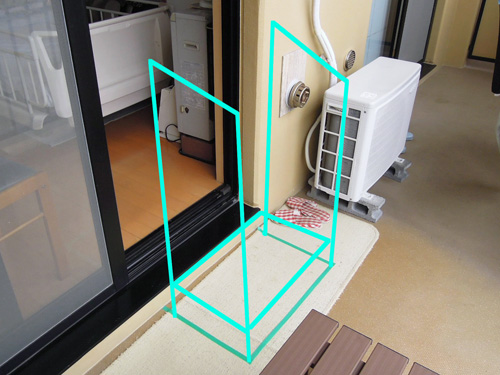屋内の手すりと、テラス入口には手すり付きのステップ台を設置しました。