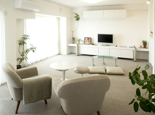 仕事が終わると、早く家に帰りたい!と思うようになりました。それは主人も同じです。二人ともこの家が大好きで、ホントに心地よい。 友人たちが遊びにくると、ソファを勧めても「こちがいい」とみんな床のカーペットに座ります。床の方が心地よいみたいで、「快適!」と言って寛いでくれます。私たちの好きな空間が、大事な友人にとっても、気軽に立ち寄れる場所になってほしいですね。