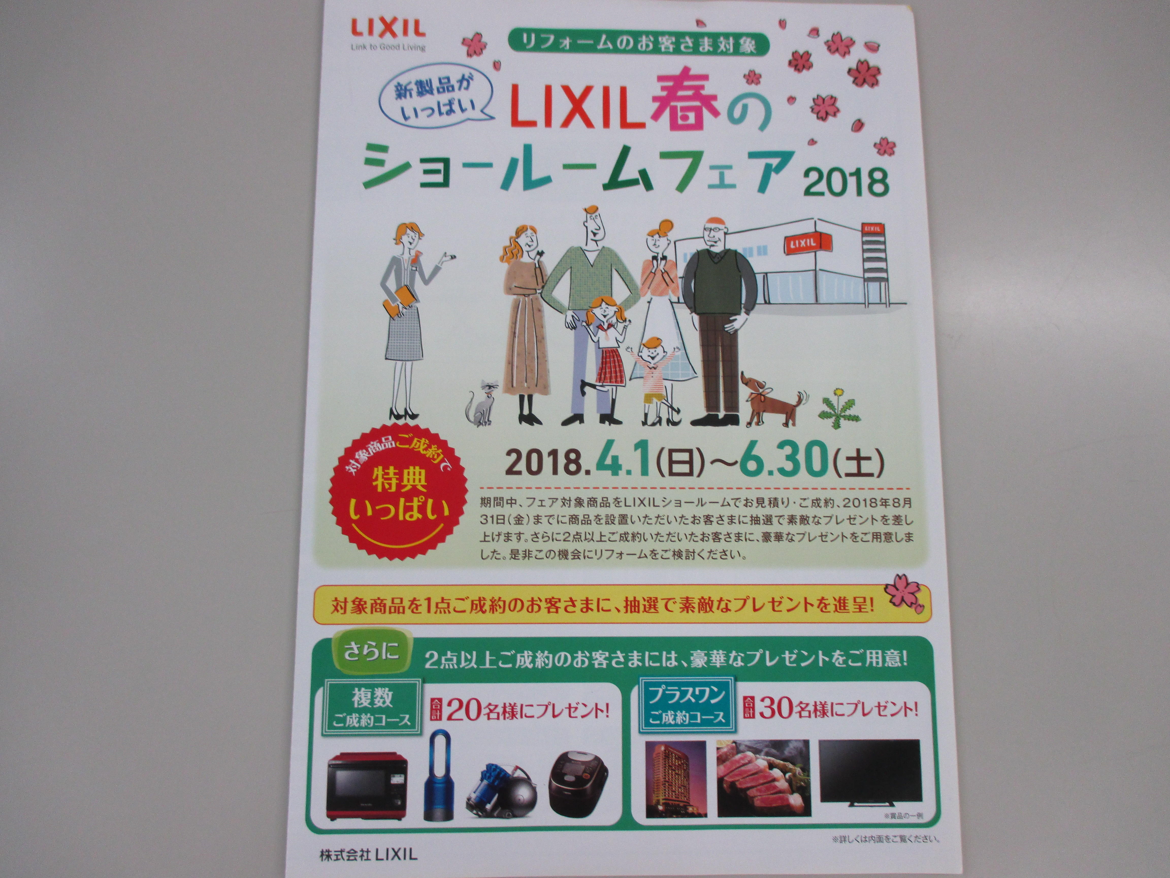さて今月はLIXILから春のショールームフェアのお知らせが届きました!