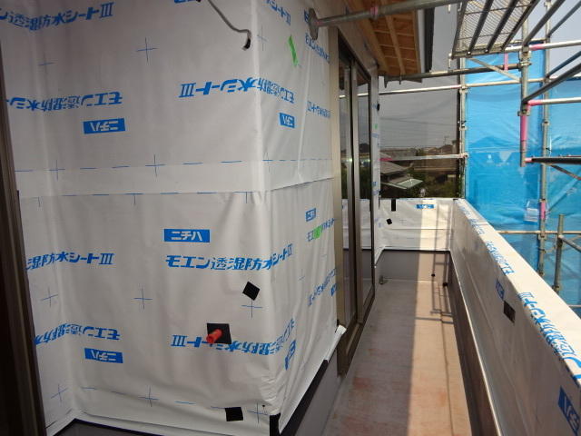 まずは防水紙。だいぶ前にお話しした外壁。外壁の下には防水の紙が貼ってあります。