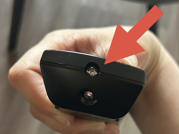 やり方は簡単。リモコンの先端をスマホのカメラに向けて、ボタンを何度か押してみてください。カメラ画面に光がチカチカ見えたら、赤外線で通信している証拠です。