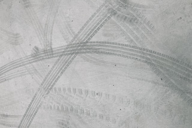 駐車場の黒ずみと言えば、真っ先に思いつくのがタイヤの跡。車のタイヤから出るゴムや油分がコンクリートに付着し、黒くなります。特に停車・発進時にこすれることで発生しやすいです。